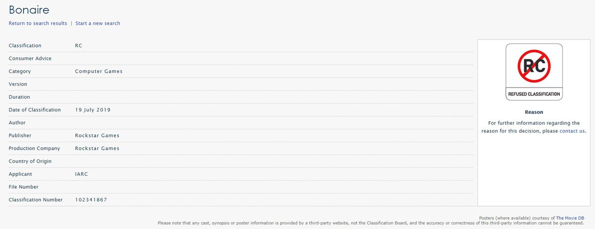 Австралийская версия Kotaku попыталась связаться с местным представительством Rockstar и рейтинговой комиссией, однако не получила ответы на свои запросы, касающиеся Bonaire. Примечательно, чт ов рейтинговой системе не указана причина отказа в выдаче рейтинга проекту Rocsktar.
