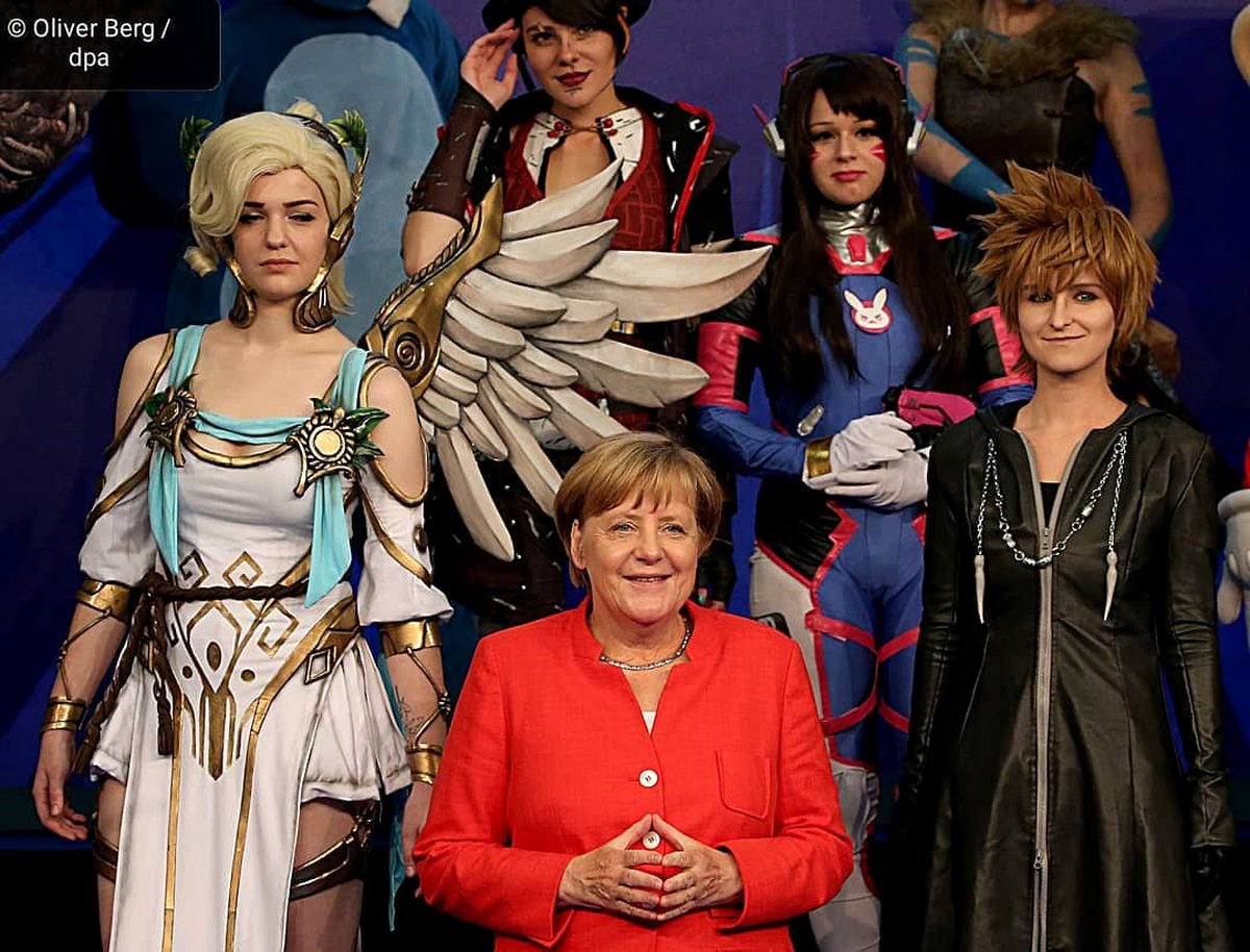 Мы пролистали их фотографии, выложенные в Twitter и Instagram, и отобрали интересные кадры с косплеерами и моделями, развлекающими посетителей стендов игровых компаний. Канцлер Ангела Меркель настоящая — она участвовала в открытии выставки.