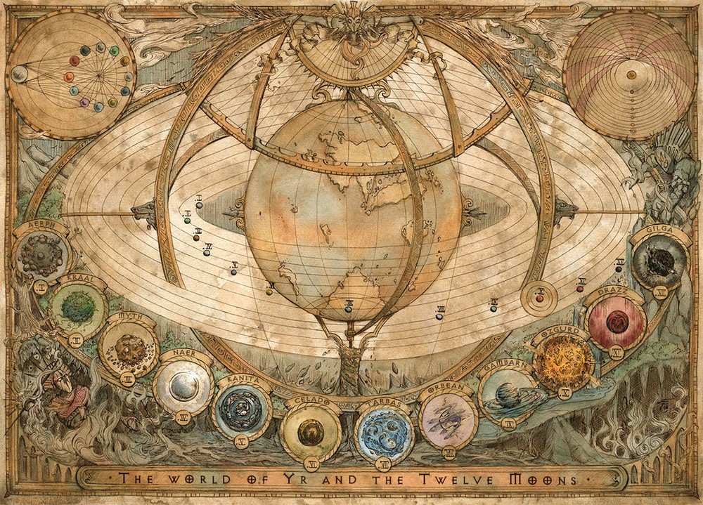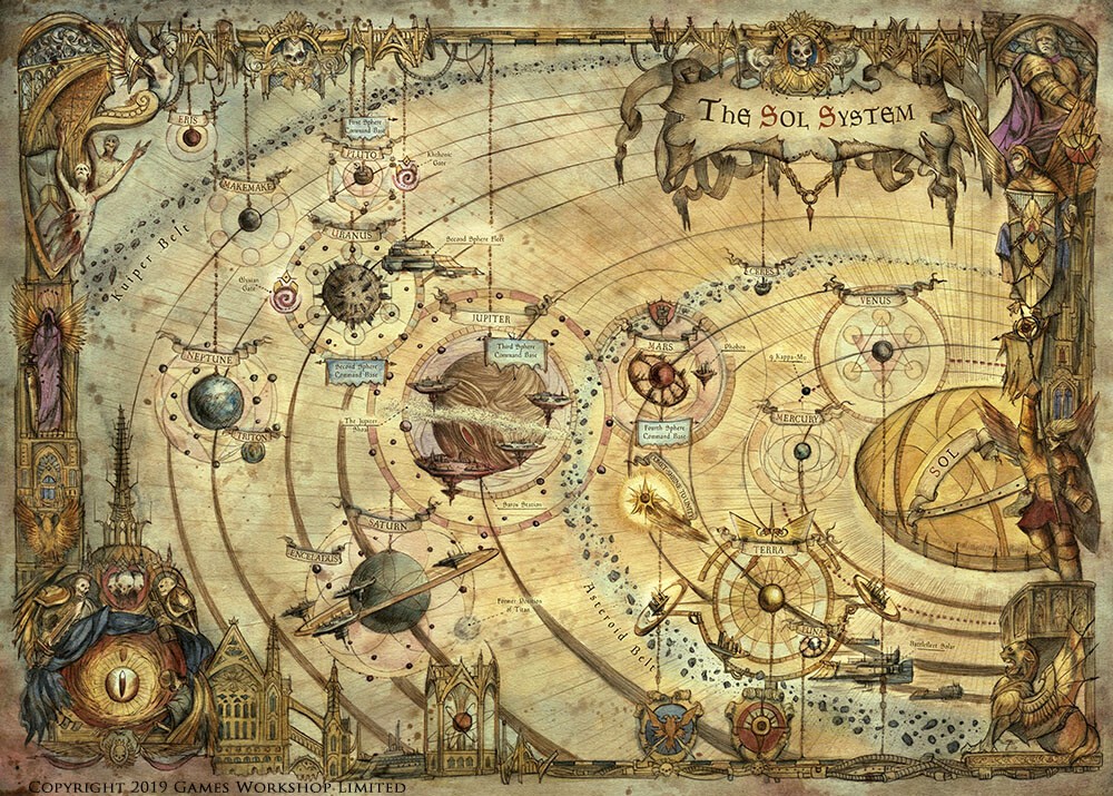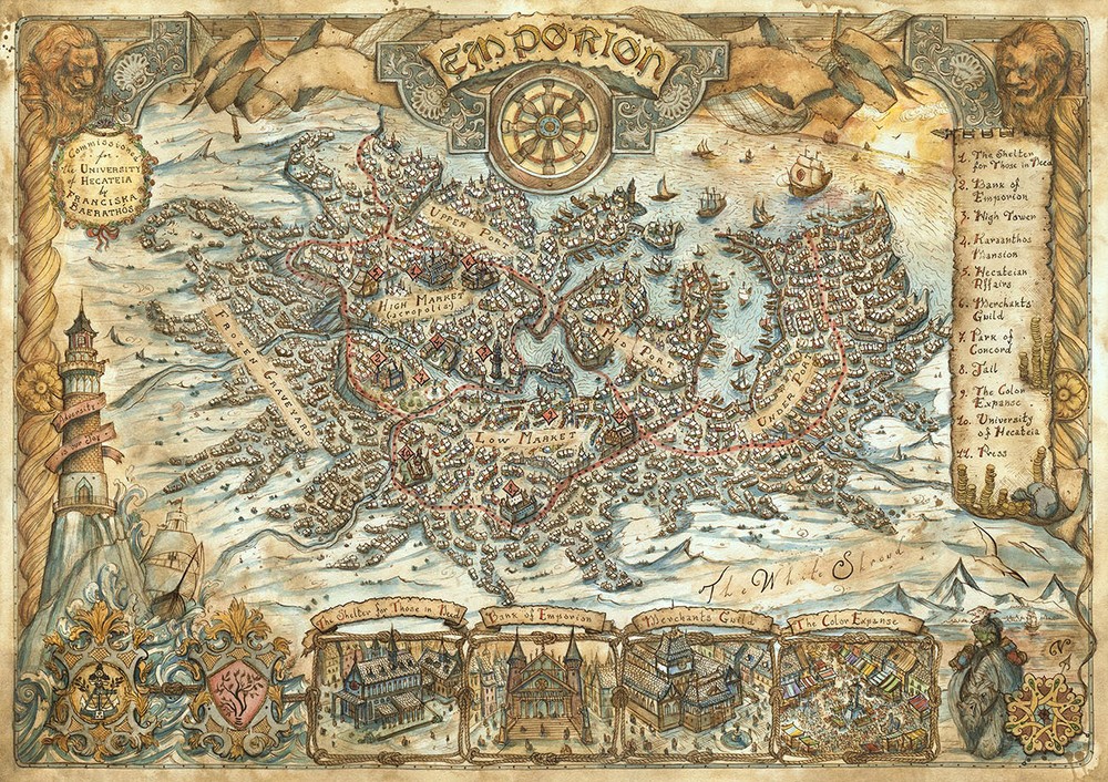 Среди ее работ можно найти карты осады Терры или Солнечной системы из вселенной Warhammer 40.000, карту мира Octopath Traveler и карты для различных настольных ролевых игр. Все они выполнены так, словно нарисованы коллегами Америго Веспуччи времен Великих географических открытый.
