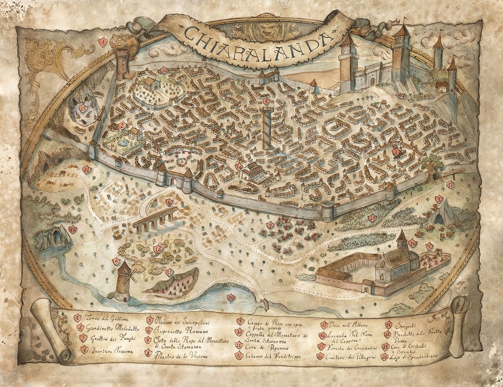 Итальянская художница Франческа Баеральд специализируется на картографии виртуальных миров. Среди ее клиентов есть известные компании вроде Games Workshop, Dark Horse и Square Enix, для их проектов Франческа нарисовала множество карт в средневековом стиле.
