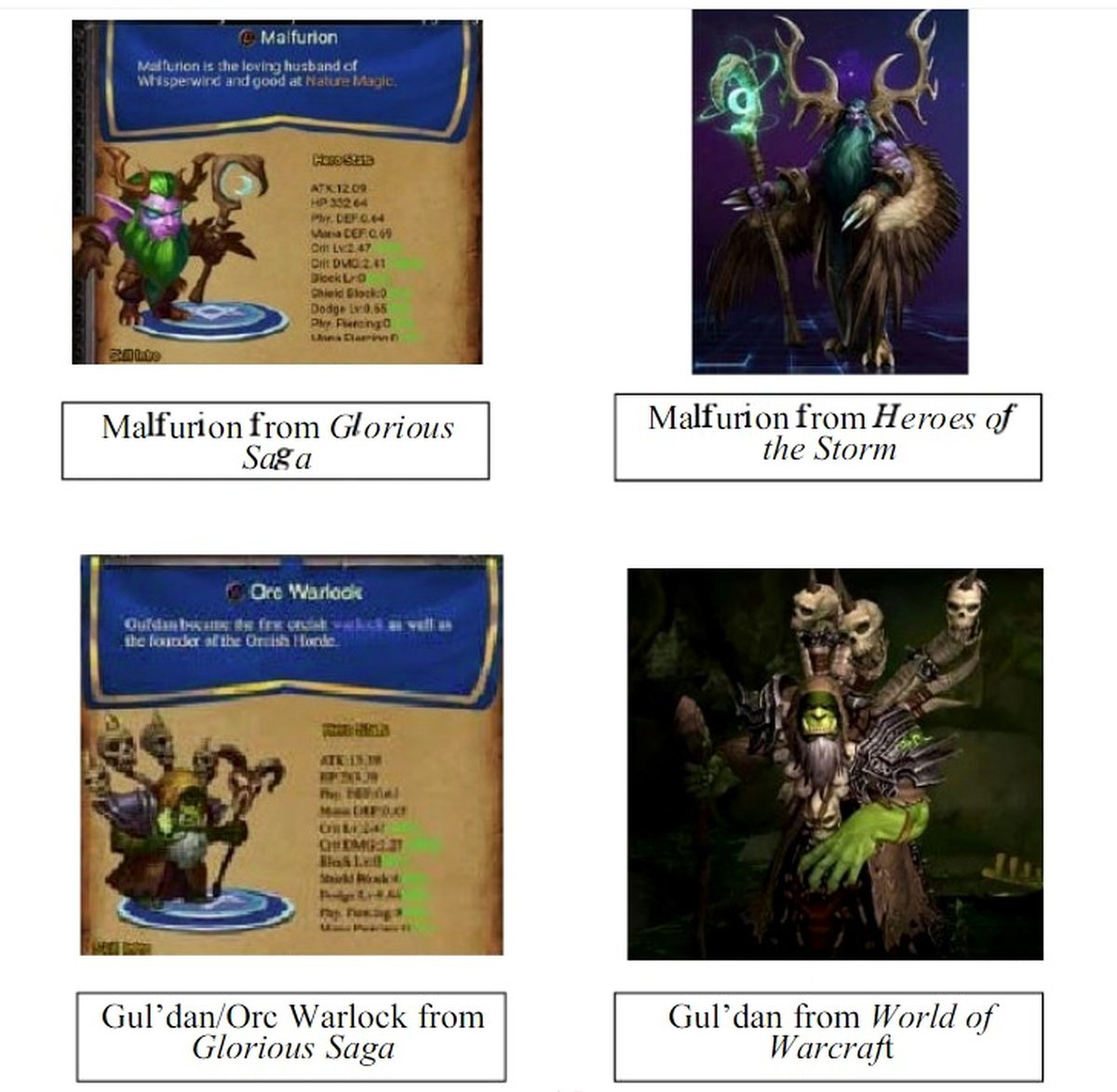 В частности, в Glorious Saga — на Западе она известна под именем Glorious World — появляются Малфурион, Джайна Праудмур и Гул'Дан. Вот сравнительные изображения персонажей, приложенные к иску Blizzard.