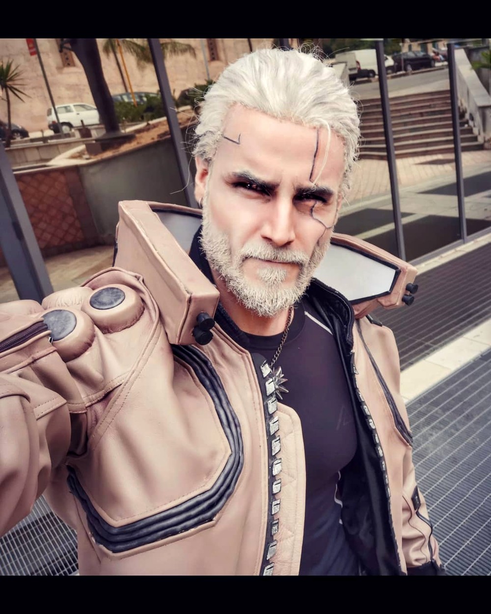 У итальянского косплеера Taryn Cosplay сейчас два основных образа: Геральт из The Witcher 3 и Джонни Сильверхэнд из Cyberpunk 2077. Воспользовавшись случаем и выставкой Gamescom, на которой собралось множество косплееров, Тайрин совместил два образа, позаимствовав часть экипировки у коллег.