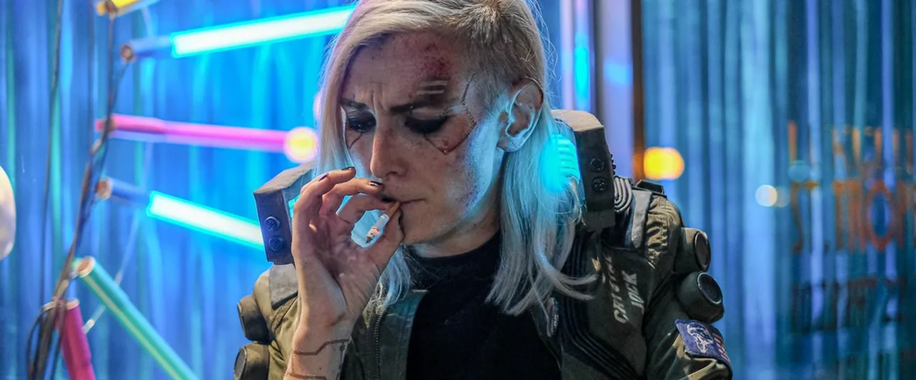 Курящий киберпанк: косплей женской версии Ви из трейлера Cyberpunk 2077