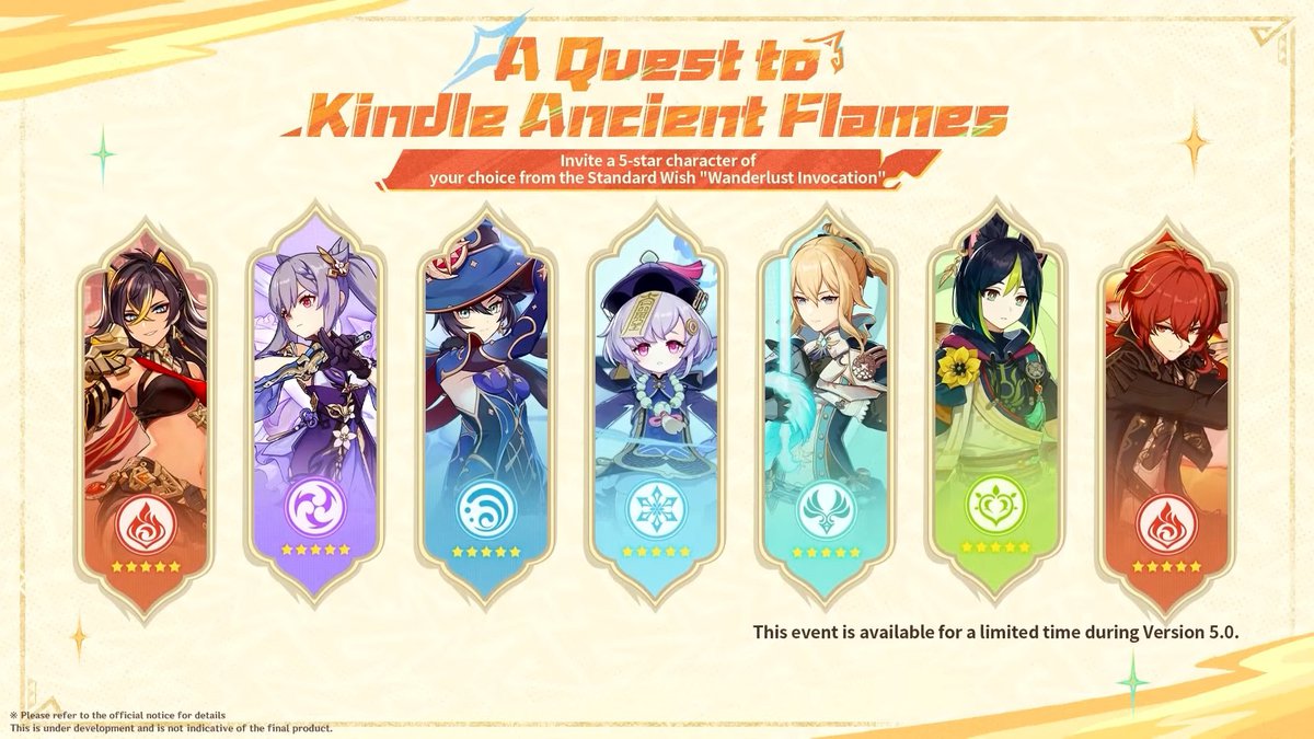 - В патче 5.0 будет два акта сюжетной линии Натлана. Во время прохождения сюжета можно бесплатно получить Качину, одного из новых персонажей.