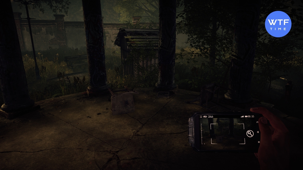 - После того, как вы очнетесь, Рэд предложит вам отправиться в корпус Б. Не спешите и сначала осмотритесь вокруг. По пути вам встретится приметная круглая беседка с колоннами. На полу лежат часы, которые можно отсканировать.