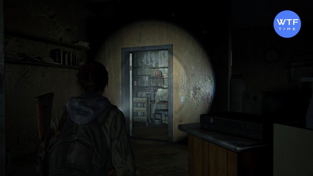 Когда Элли и Дина наденут маски и войдут в зараженную область, обыщите комнату слева, чтобы найти детали.