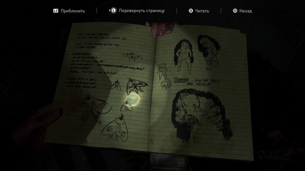 После убийства первого шаркуна вы можете исследовать его тело, чтобы Элли сделала запись в дневнике.