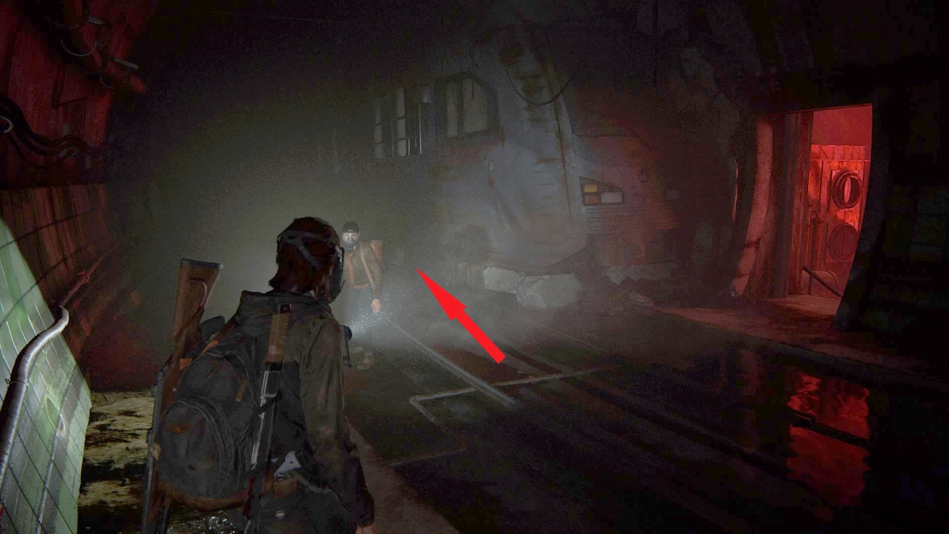 Вскоре после последней записки вам придется проползти под поездом, чтобы продвинуться по сюжету. Вместо того, чтобы зайти в коридор с красной подсветкой, пошарьте под синим вагоном слева от вас.