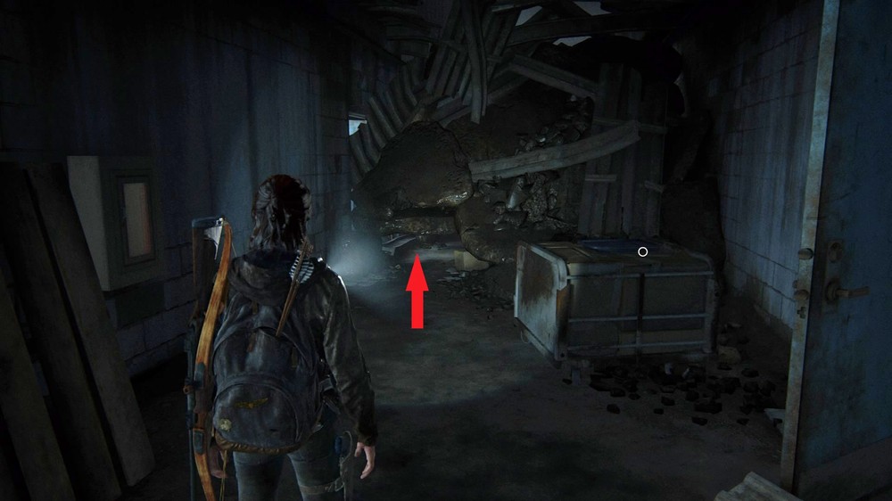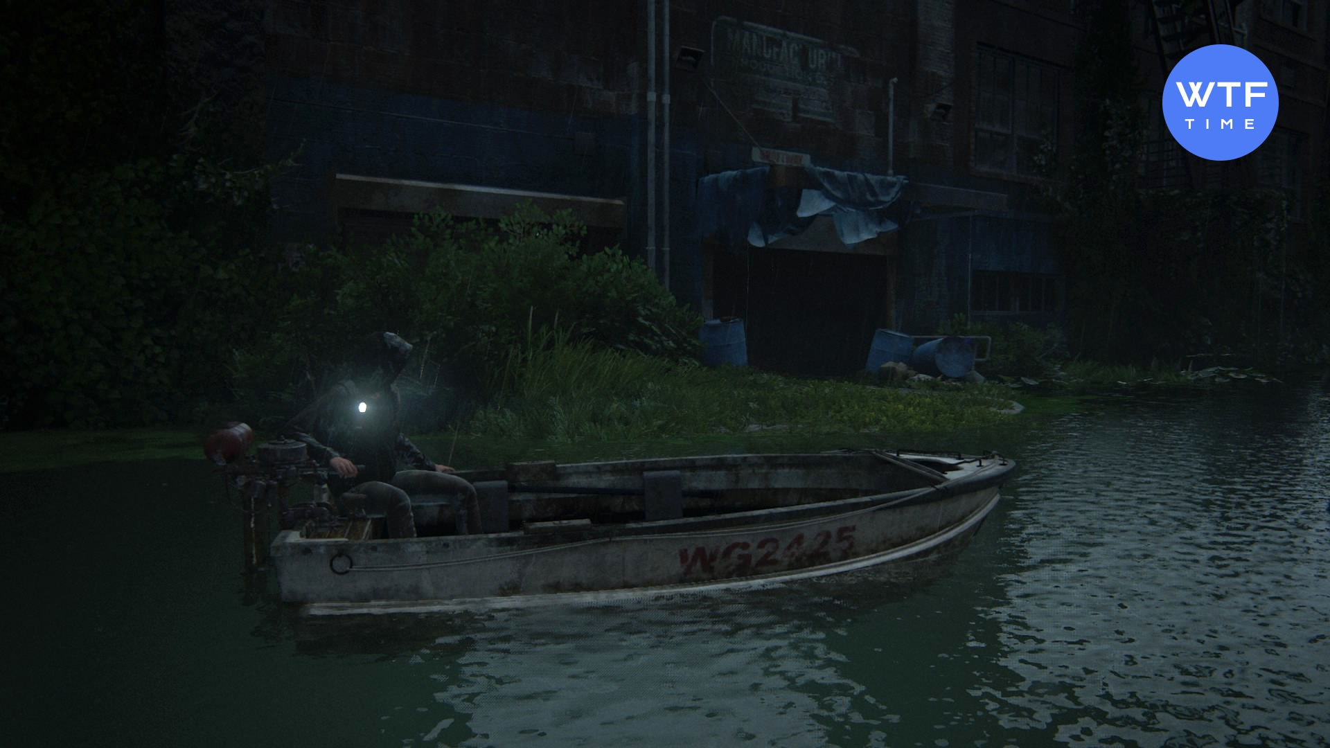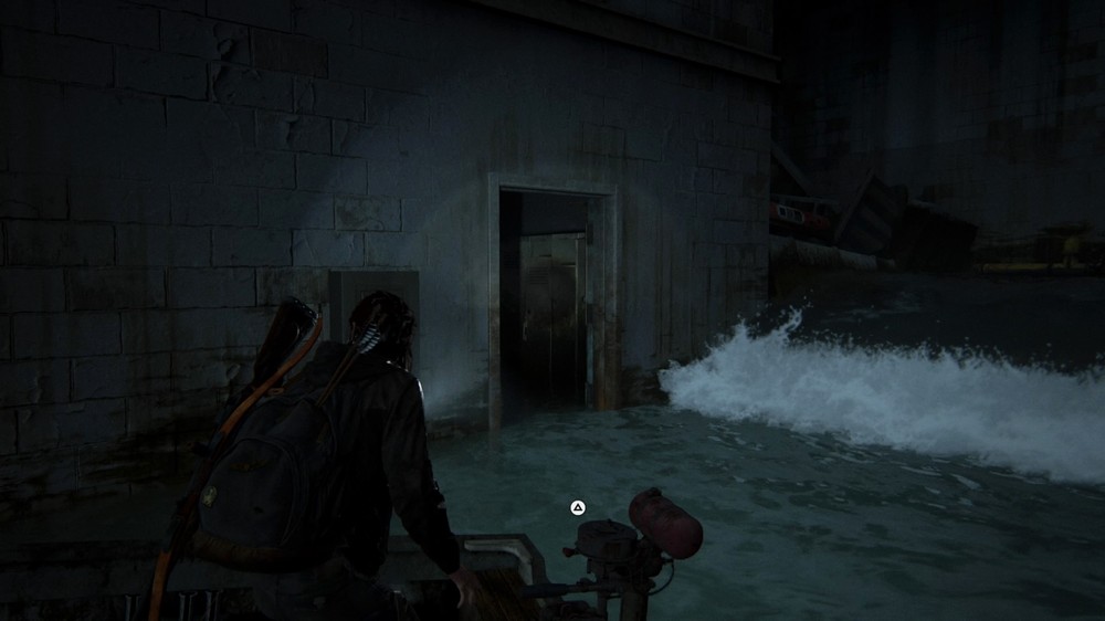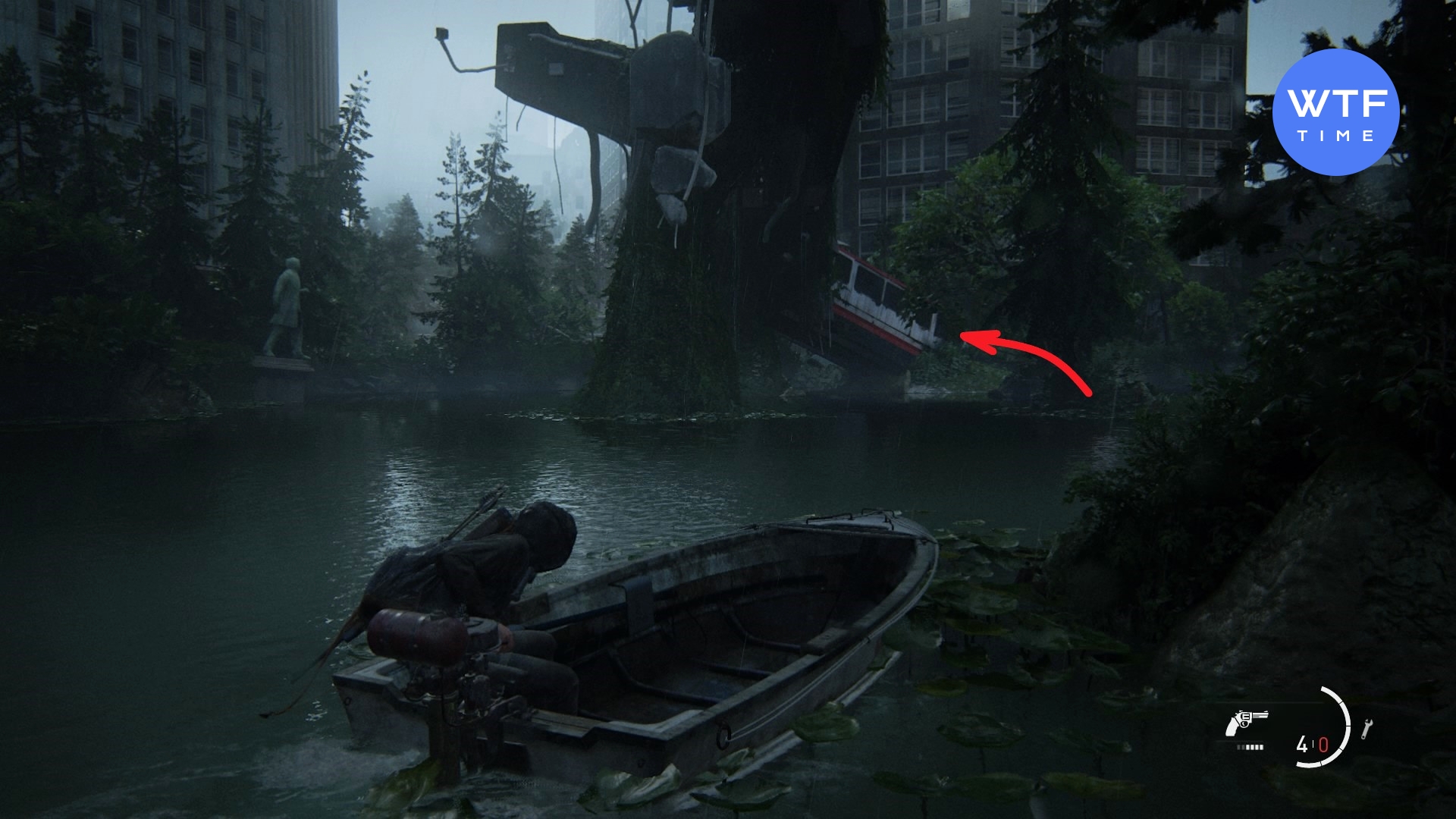 Доберитесь до места, где в лодку Элли начнут стрелять враги. Прежде чем идти к ним, причальте возле упавшего поезда. Пройдите внутрь и до конца, а затем подберите веревку с пола.