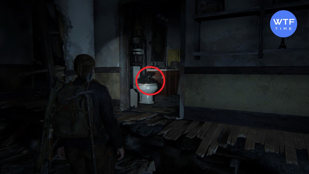 Из предыдущего двора пройдите по небольшому деревянному мостику и зайдите в следующее здание. Детали будут лежать в ванной.