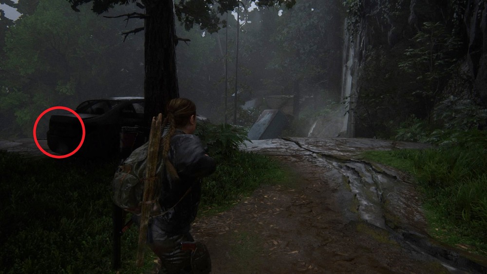 Двигайтесь по сюжету пока не увидите вдалеке водопад. Прежде чем спускаться вниз, осмотрите машину слева. Возле задней двери лежит эта монета.