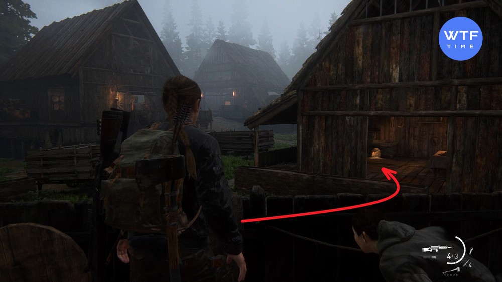 Чтобы покинуть область кукурузных полей, вам нужно пролезть через дыру в заборе вслед за Ярой. После этого вы вместе зайдете в здание. Обыщите стол в углу, чтобы собрать эти дополнения.