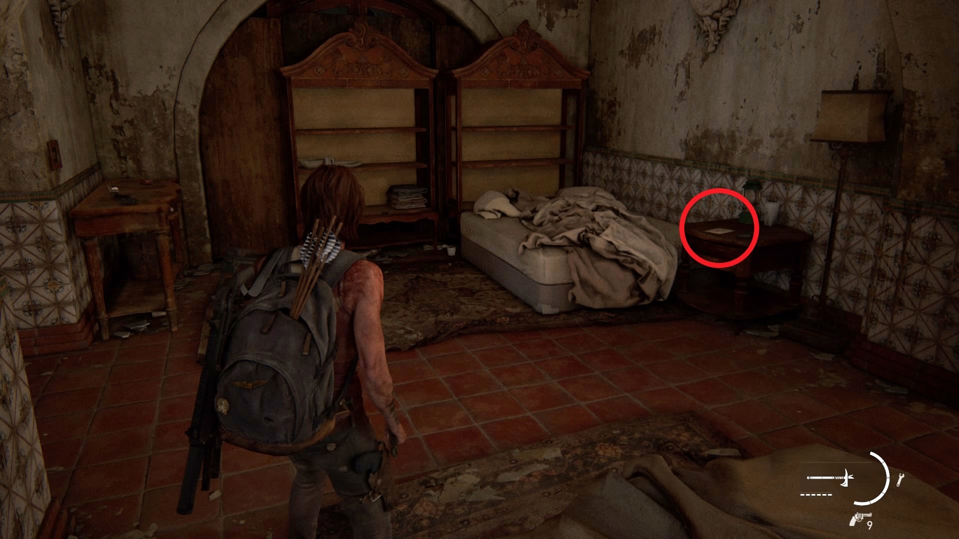 По левой стороне области, где проходит ваша следующая стычка с врагом, стоит большой дом. Внутри нужно подняться наверх по приметной спиральной лестнице со скриншота ниже. Сразу после подъема поверните направо, чтобы найти это письмо на тумбочке возле кровати.