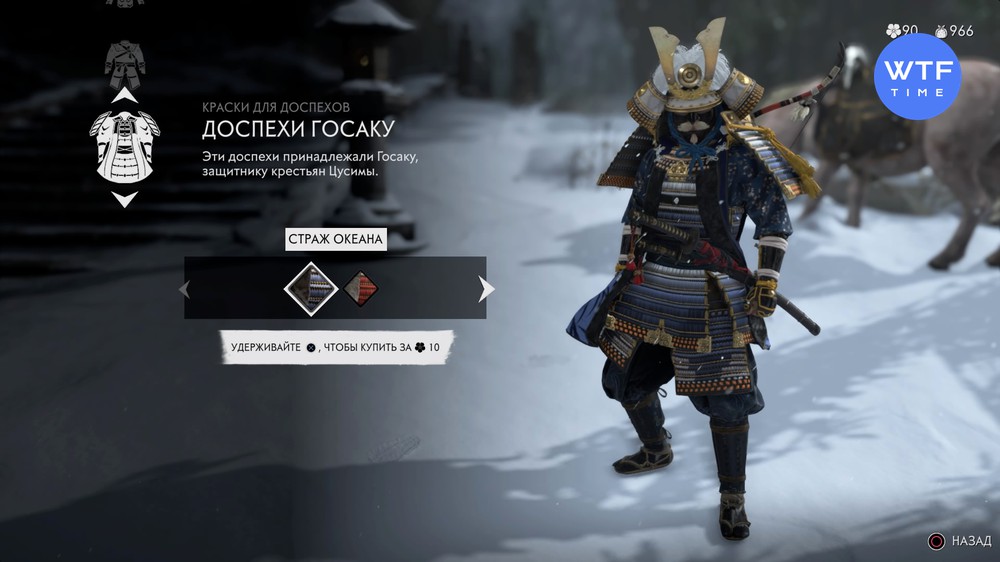 За выполнение задания вы получите доспехи Госаку. В дополнение к ним вам нужно приобрести у торговцев краску «Страж океана». Торговец из Бухты Умуги или Храма Дзёгаку вполне подойдет.