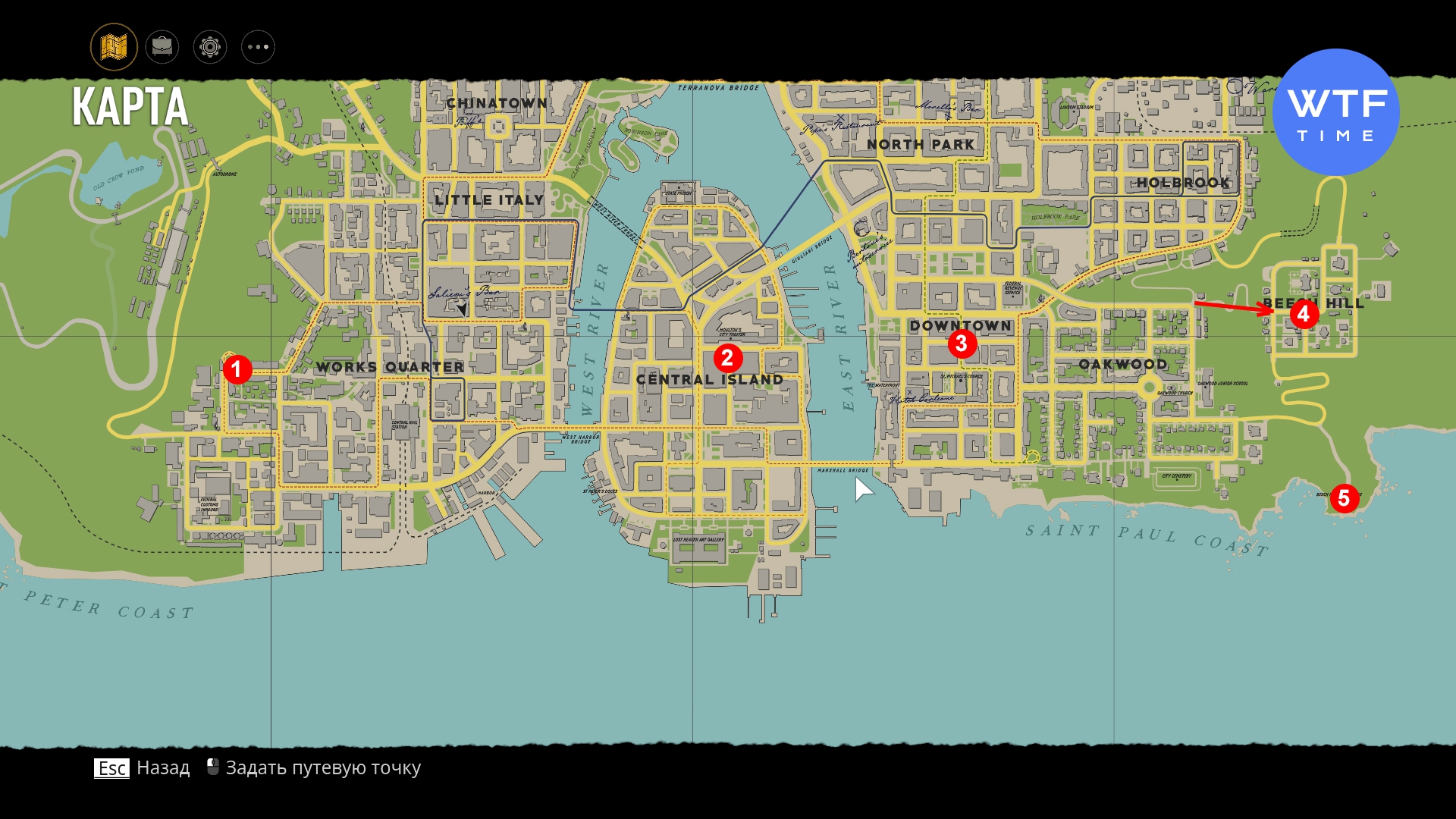 Задание: Бэтти. У этой машины проблемы с бензобаком, поэтому вам нужно проложить свой путь к конечной точке через заправки. На третьем скриншоте ниже мы отметили те, на которые заезжали сами. Они отмечены на карте характерным значком.
