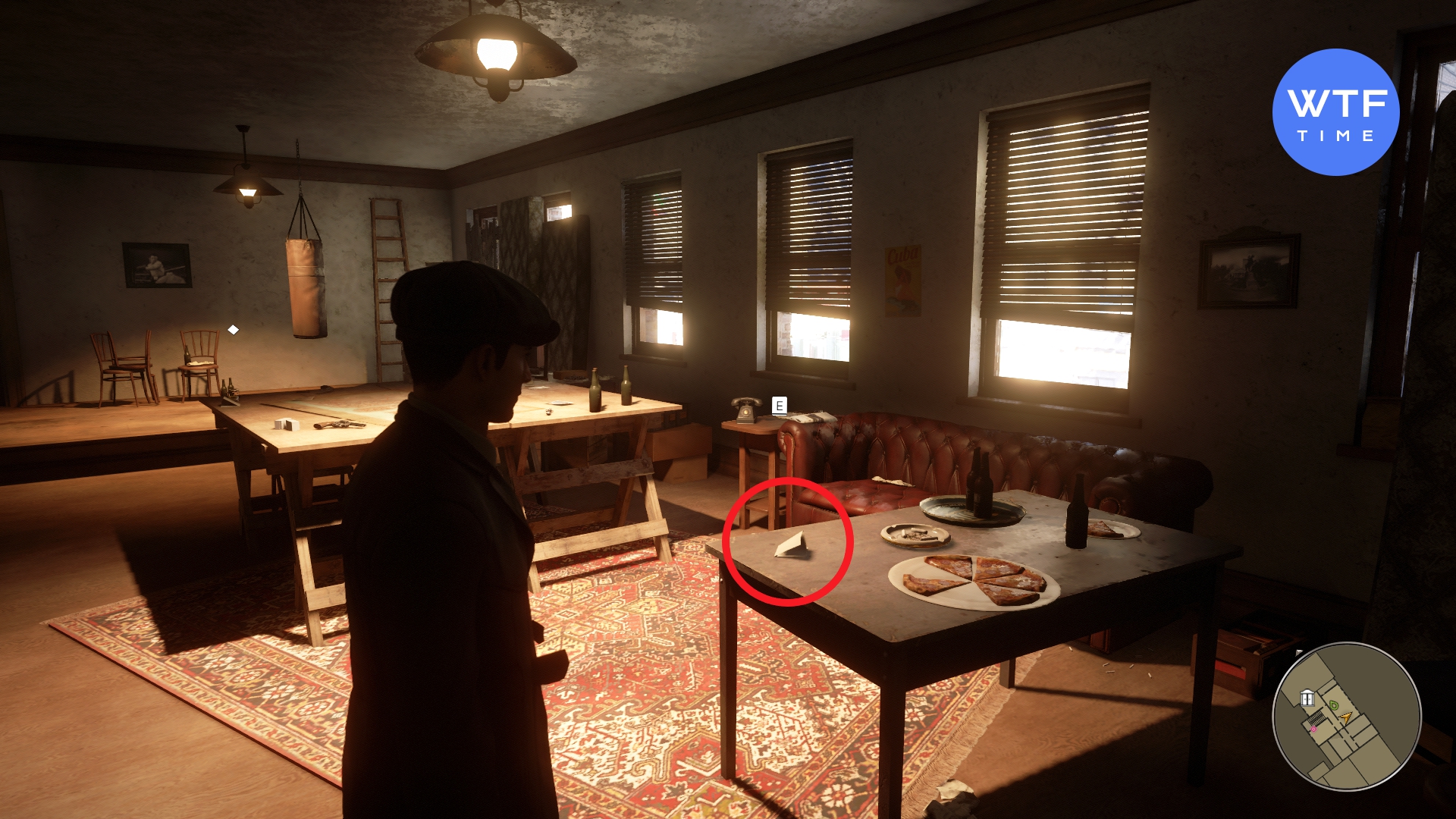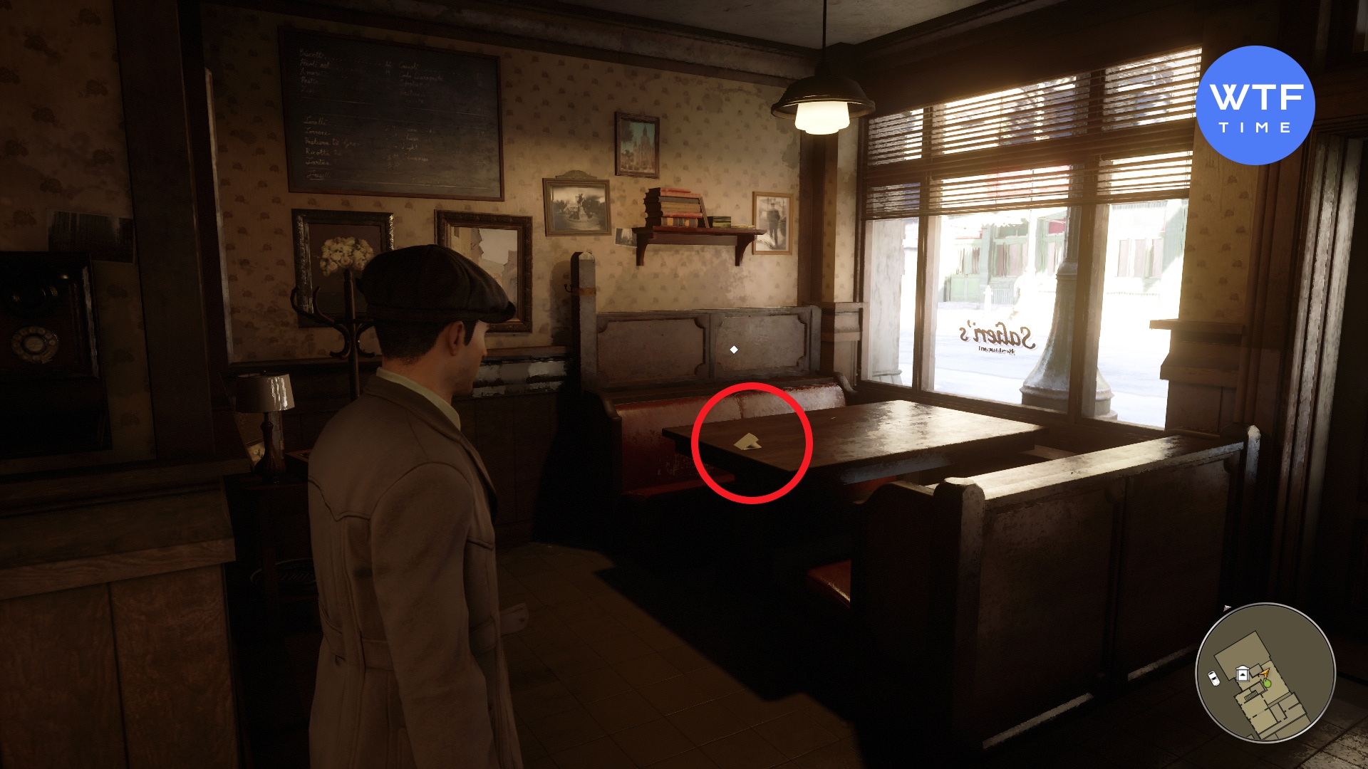 Телефонная будка: на станции трамвая в рабочем районе. Прийти нужно ночью. Чтобы переключить время суток, используйте картинку с соответствующим изображением в комнате совещаний на первом этаже (см. скриншот 3 ниже).