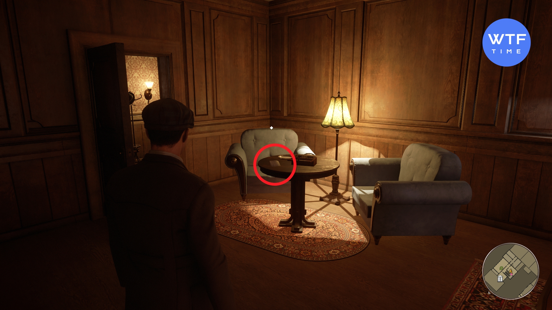 Записка: в кабинете на втором этаже, на столике возле двух кресел.