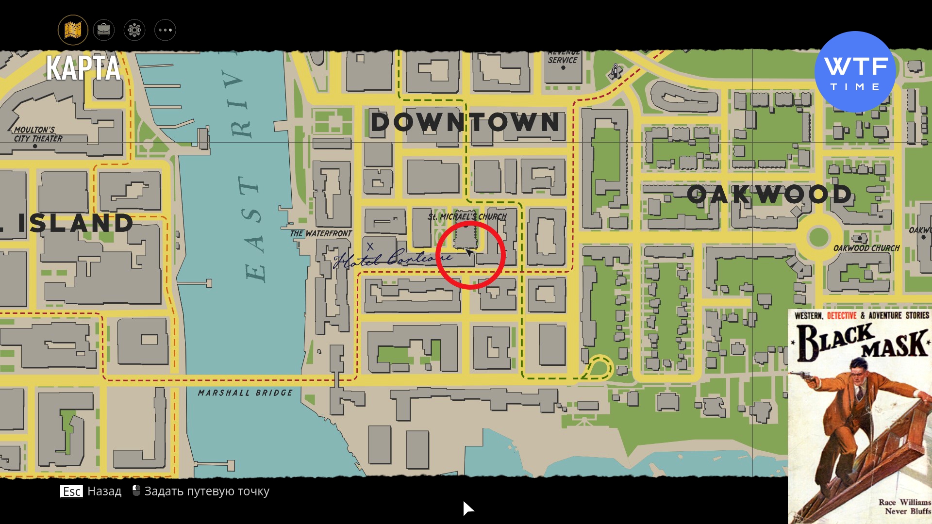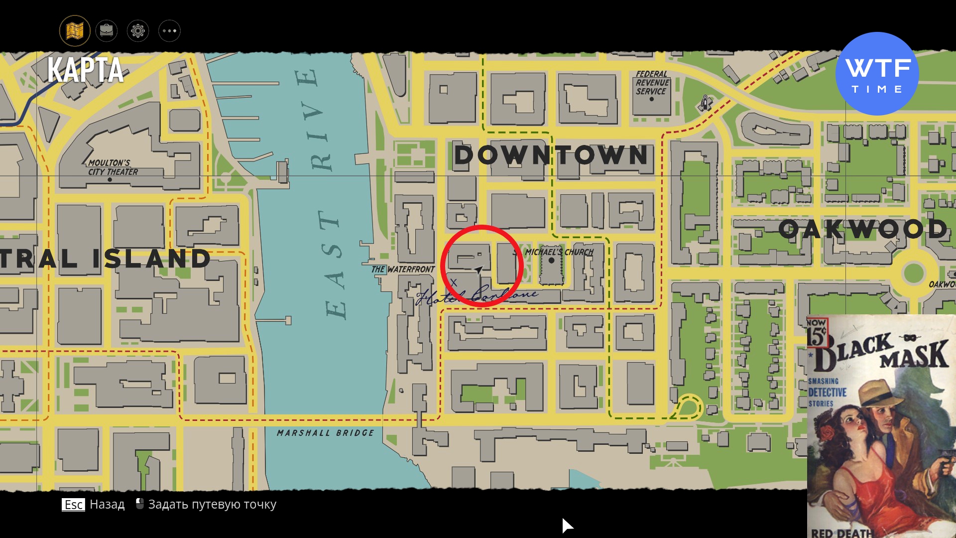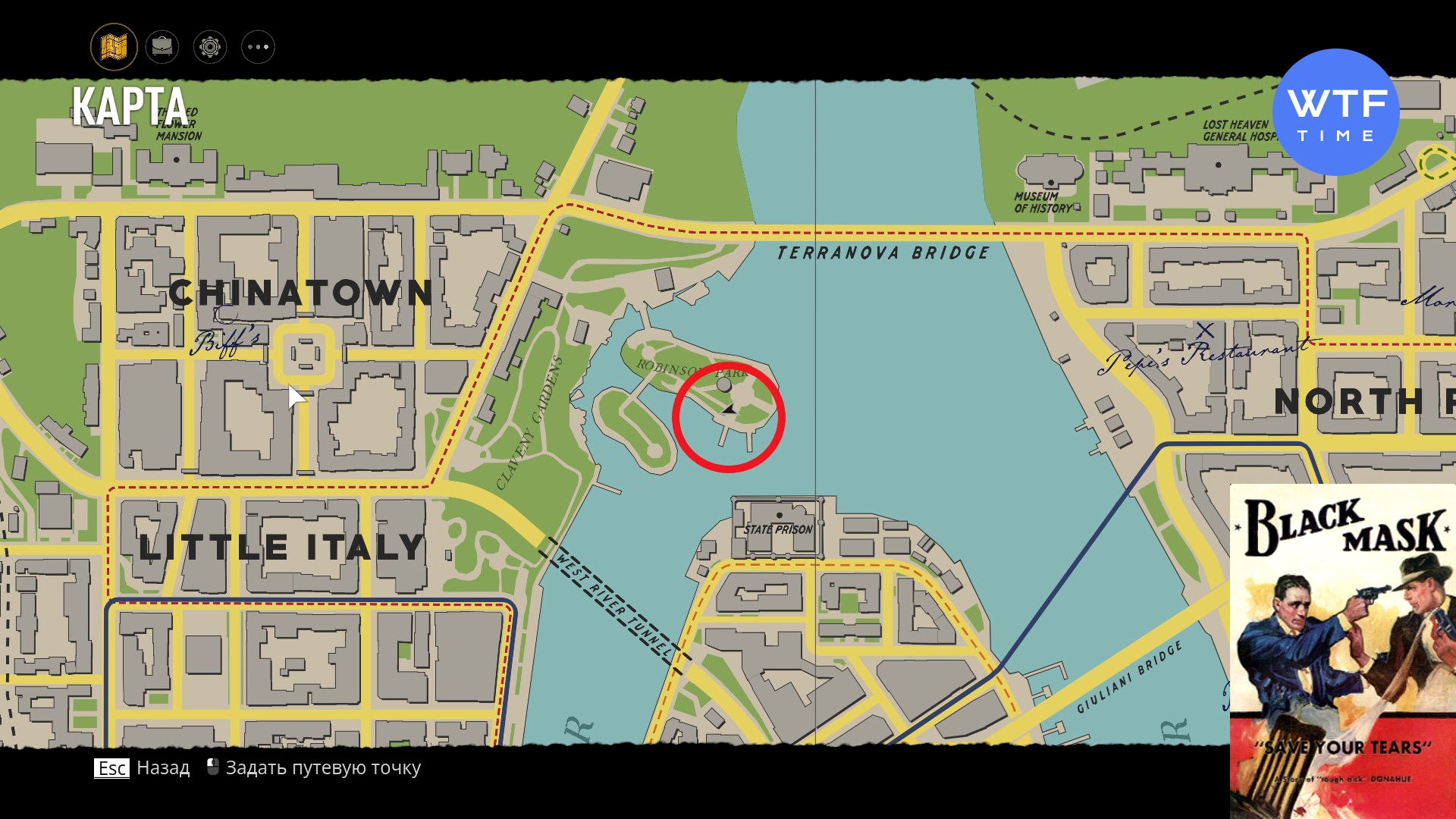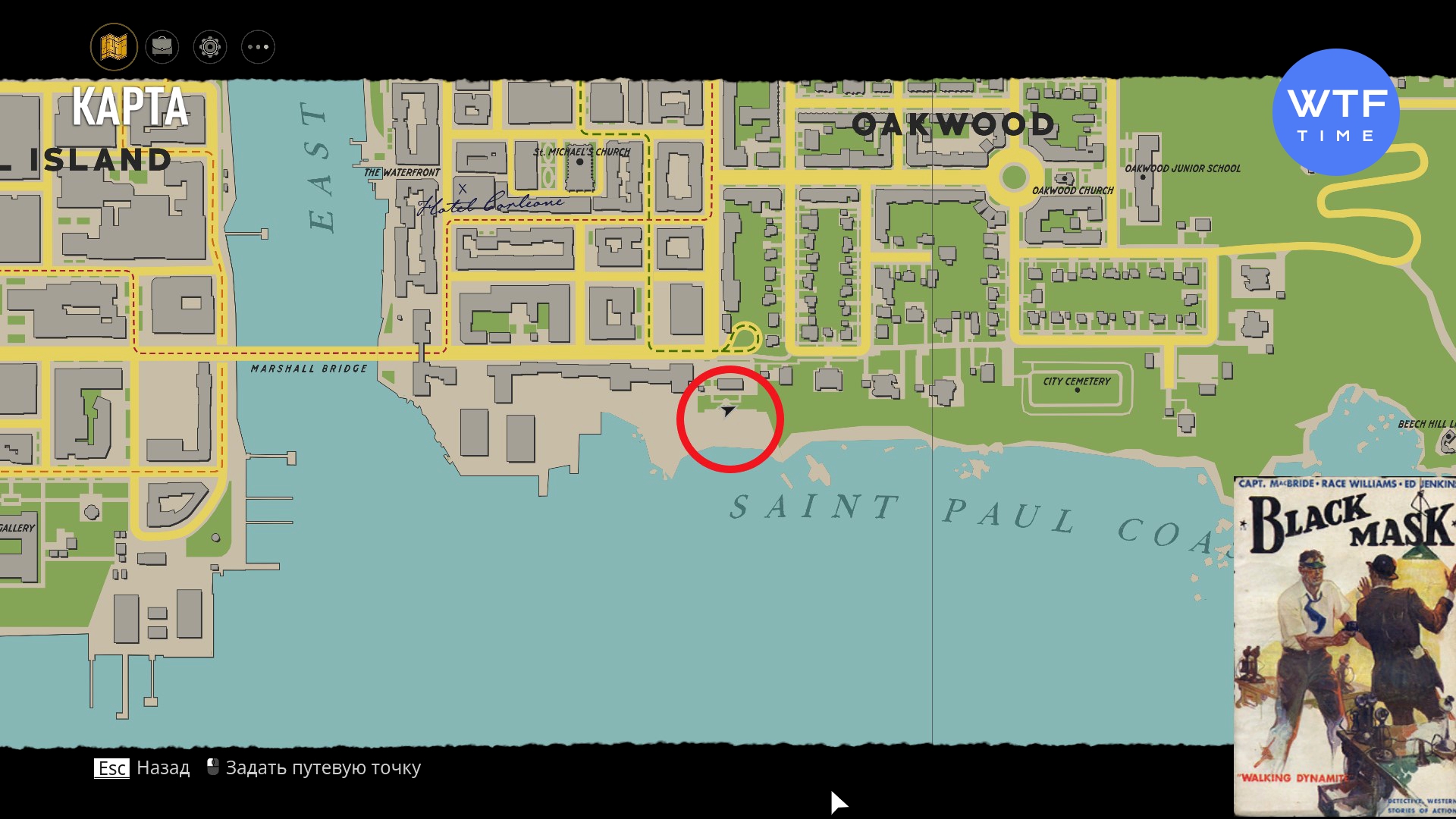 - Журнал «Черная маска» №7 - юго-западный угол Оуквуда, нужно спуститься по ступенькам вниз к берегу. Журнал лежит под лавочкой.