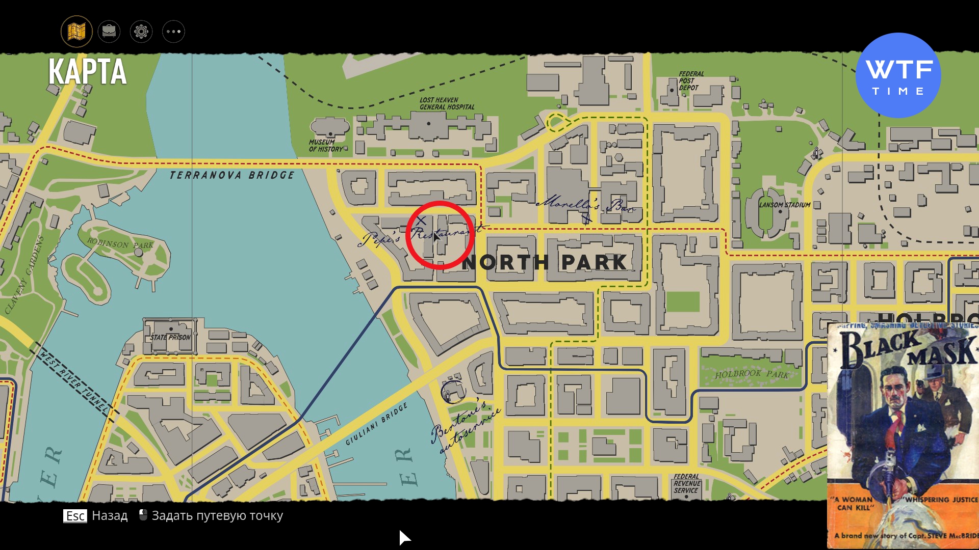 - Журнал «Черная маска» №19 - к востоку от бара Сольери, на тротуаре между прилавками с фруктами.
