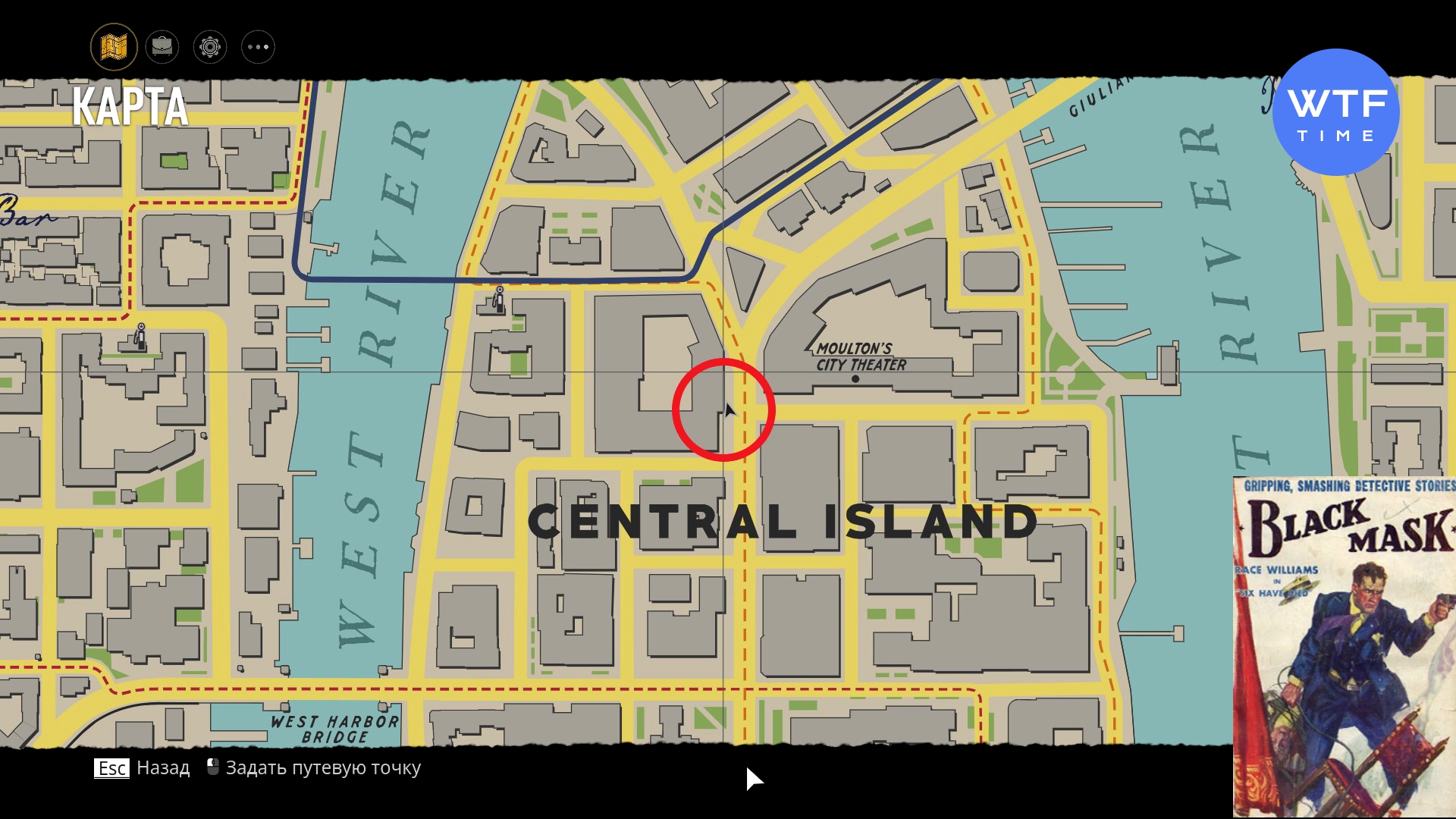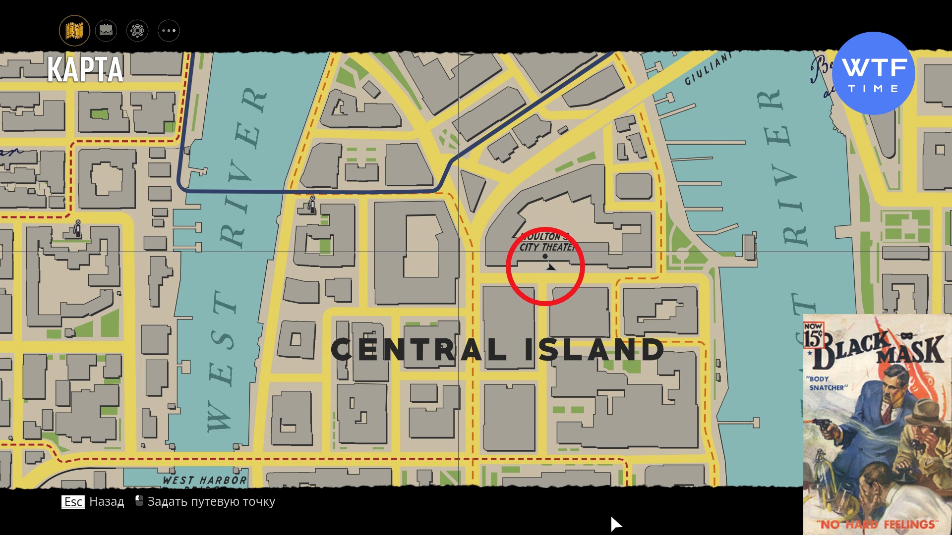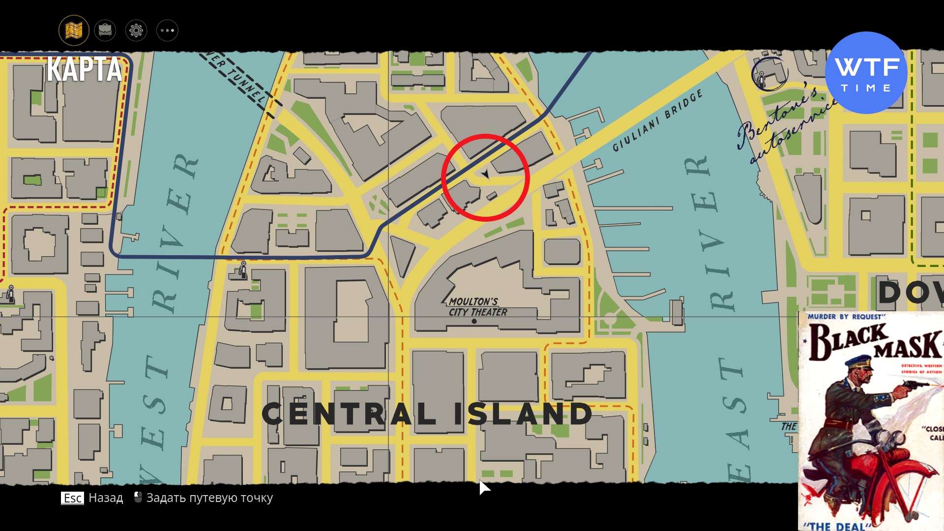 - Журнал «Черная маска» №15 - возле газетного киска к западу от театра Моултона.