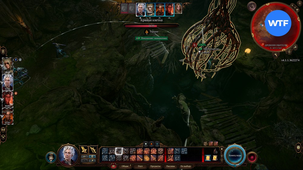 Пройдя область с ловушками, вы доберетесь до Древней обители и запустите бой с каргой. Первое что она сделает — подожжет клетку. Потушите её, чтобы спасти Майрину. Можно кинуть бутылку с водой или использовать заклинание Создание воды, которое есть у Шэдоухарт.