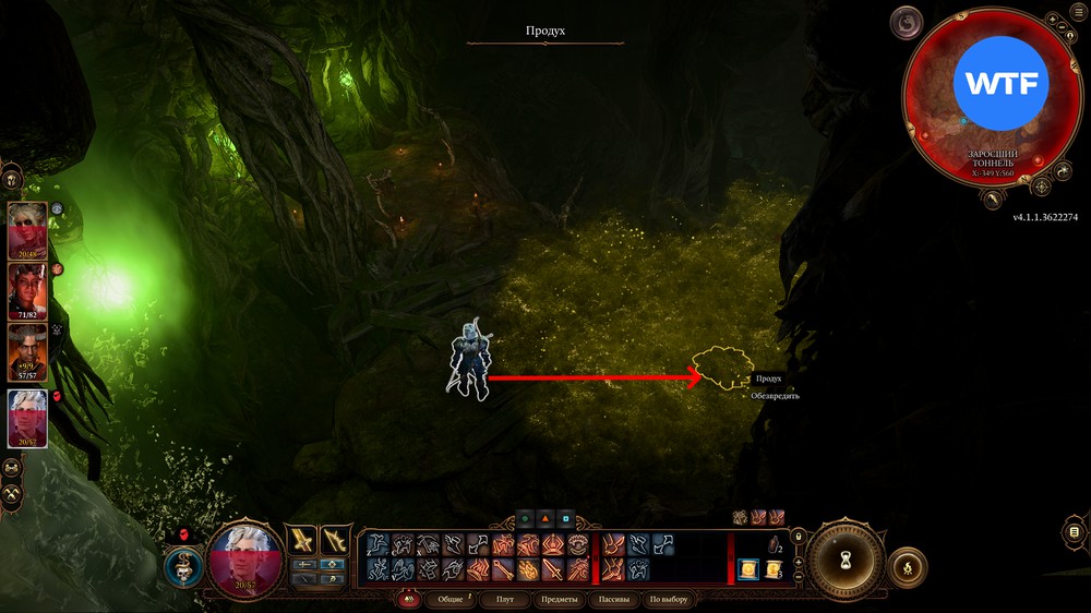 После этого вы окажетесь в области с газовыми облаками. Внутри каждого такого облака обязательно есть продух. Если кинуть в него что-нибудь из инвентаря — облако исчезнет. Отправьте вперед внимательного персонажа, т.к. под ногами у вас будет много ловушек.