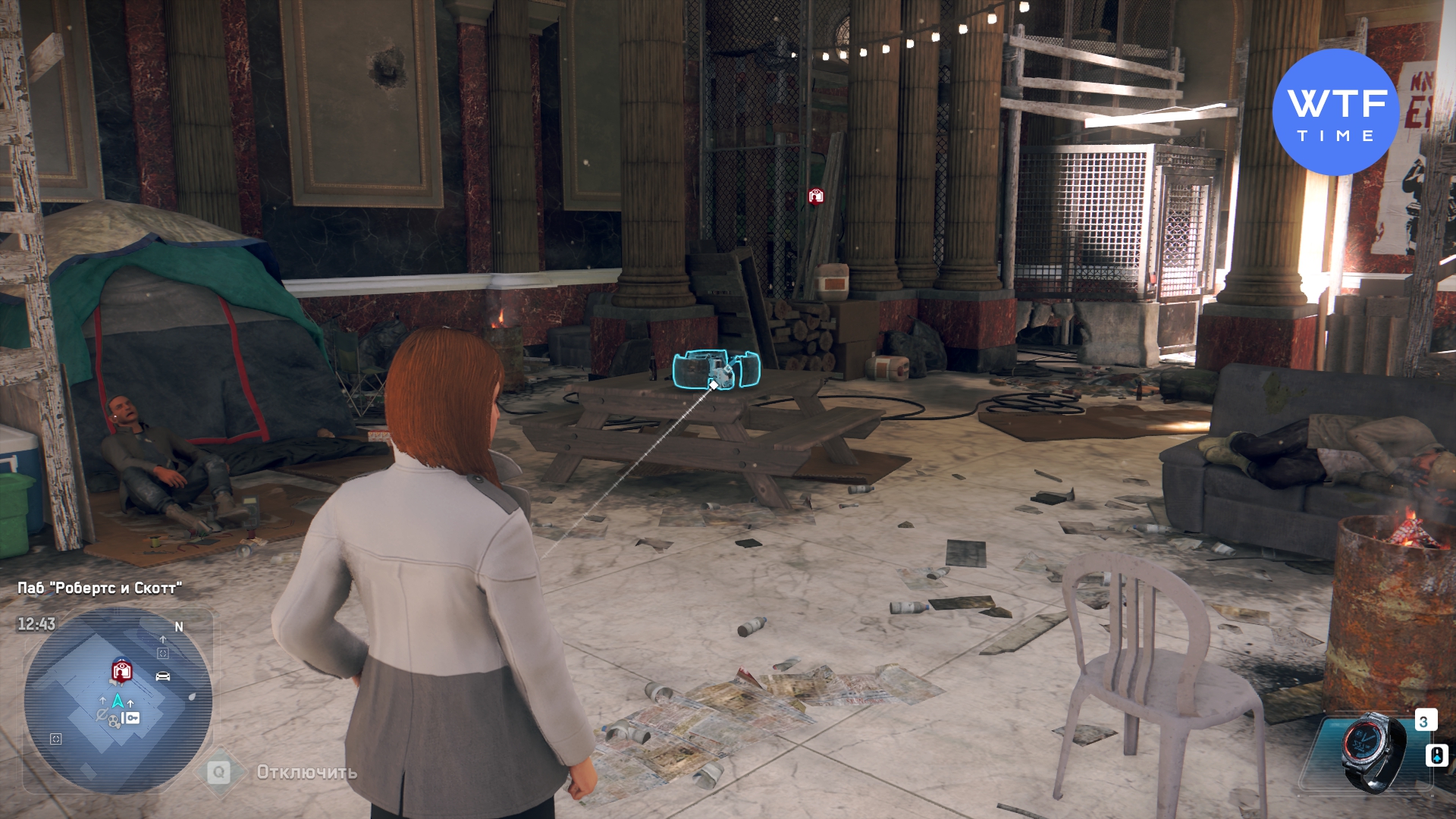 - Взлом хаба ctOS - путь к хабу лежит через убежище бездомных. Чтобы разблокировать дверь, взломайте дрон, лежащий на столе. Взлетайте на второй этаж и скачайте ключ за красным занавесом. После взлома хаба вам нужно будет переключаться между камерами, чтобы взломать взломать три компьютера и получить доступ к главной консоли.