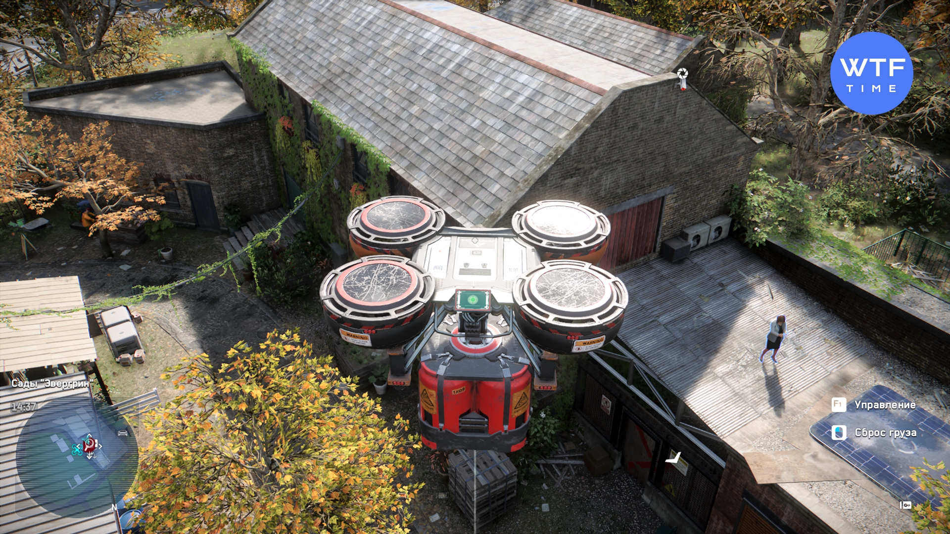 - Порча имущества - просто используйте грузовой дрон, чтобы добраться до нужного терминала, расположенного на строительных лесах.