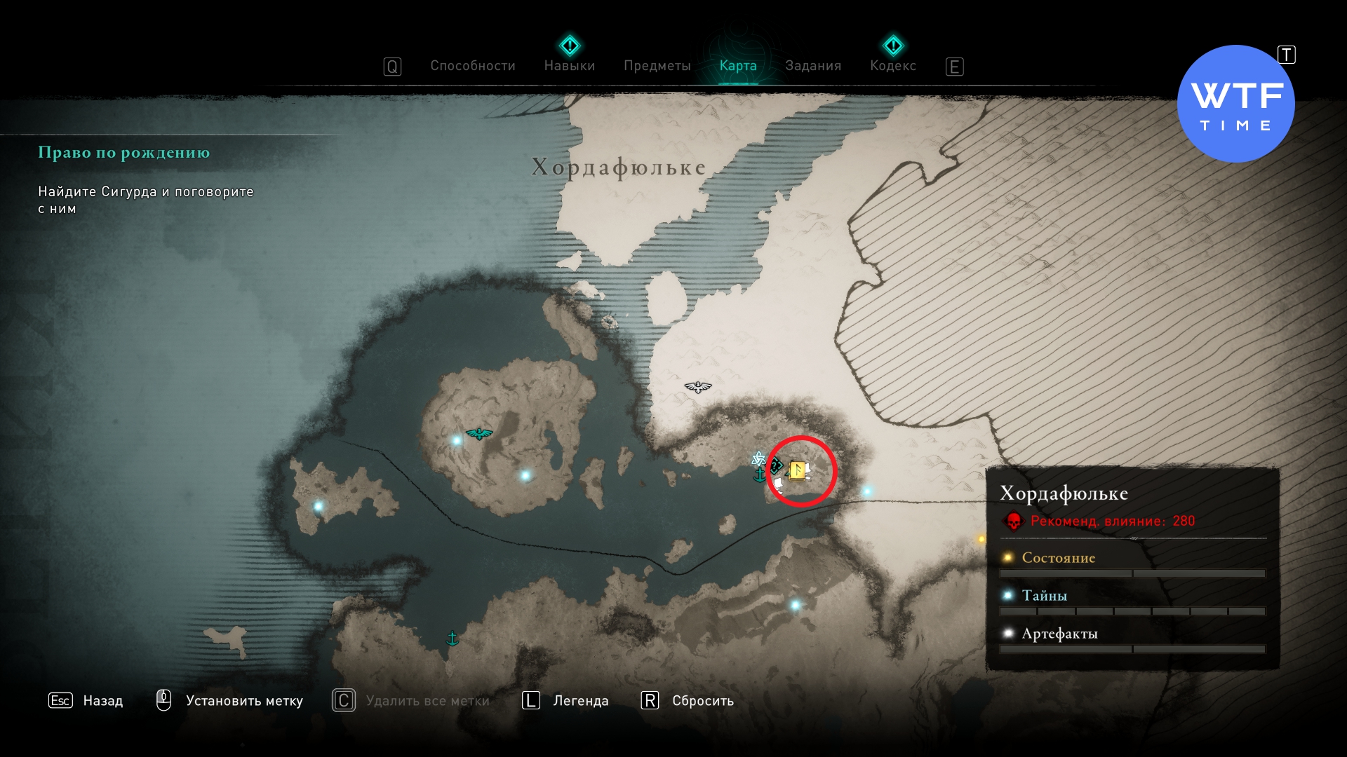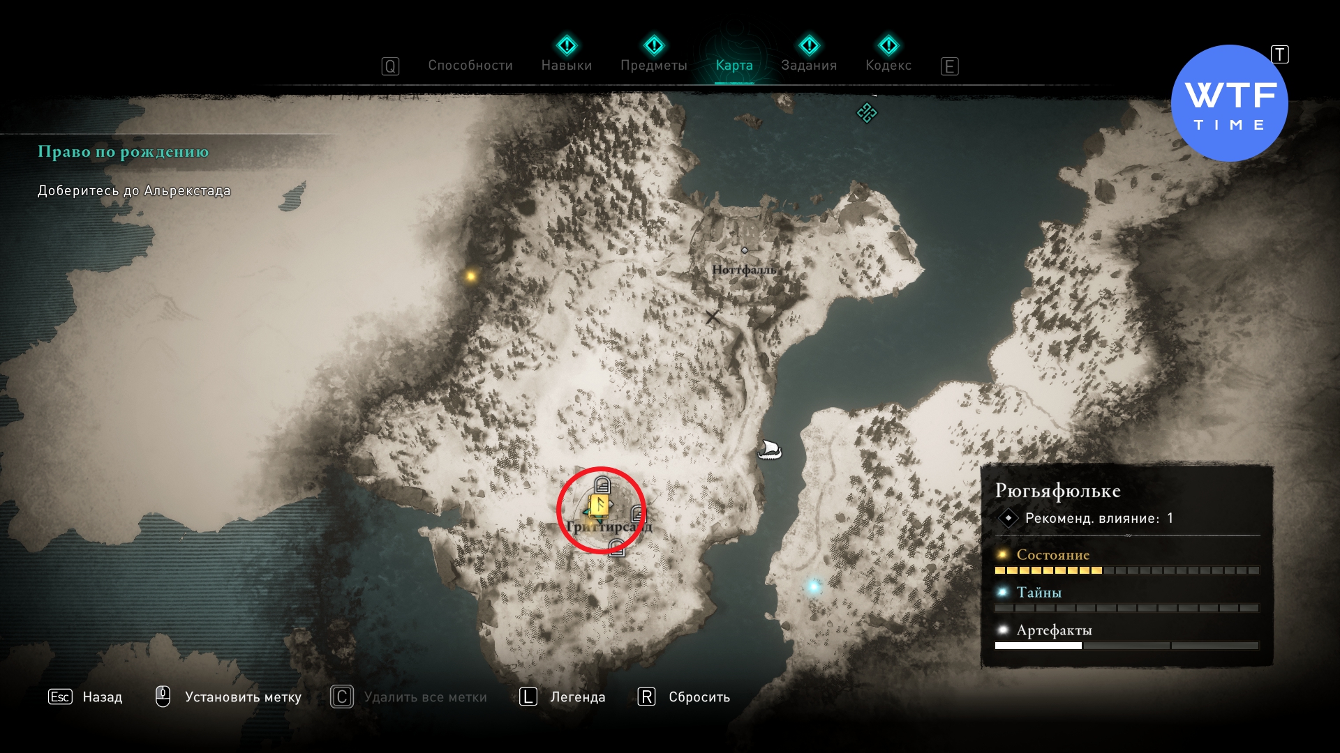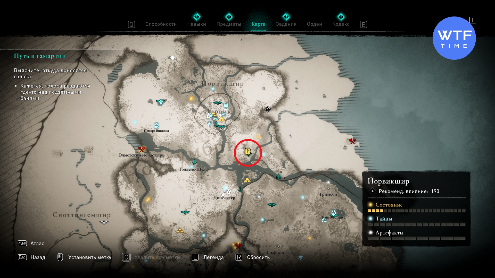 Вам нужен лагерь Нитяной перевал к востоку от Йорвика. Дверь, ведущая к этой Книге Знаний, заперта на ключ. Чтобы до него добраться, используйте трос.