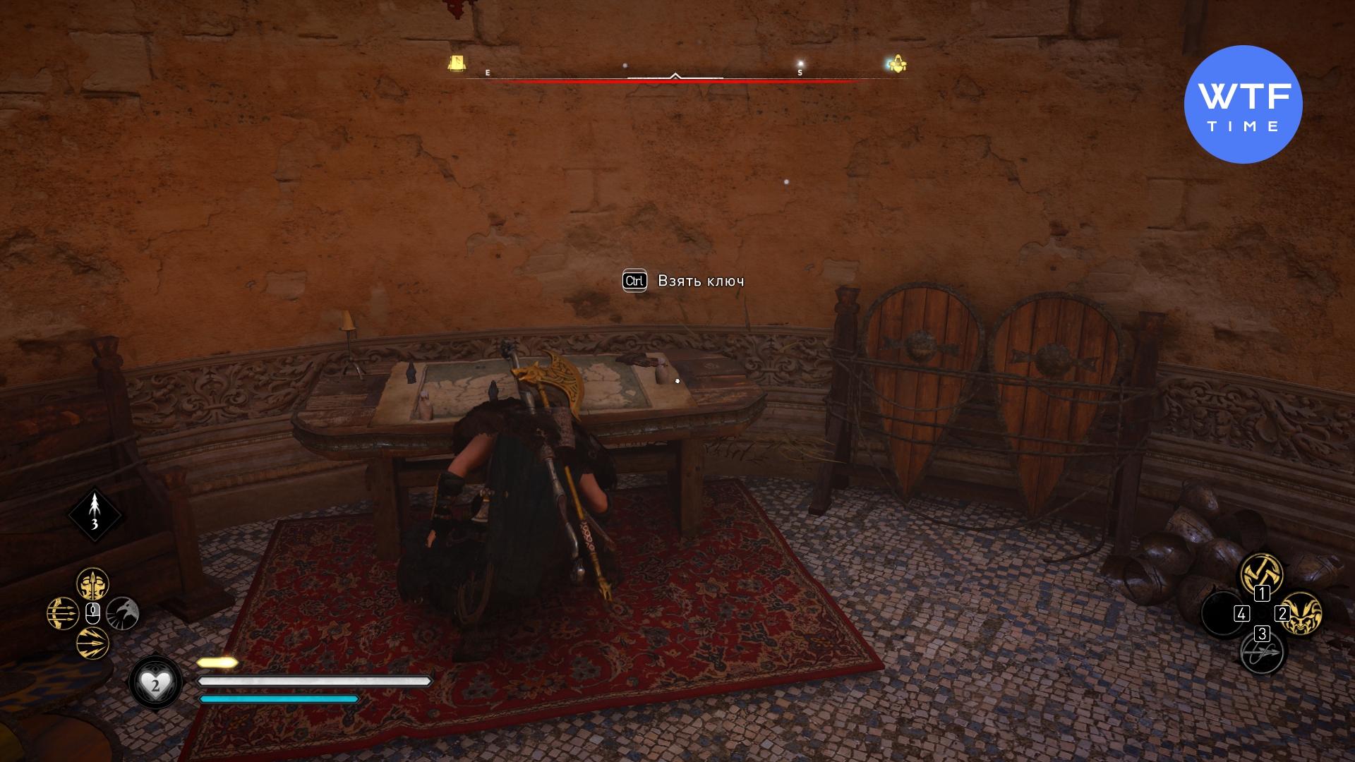 Возьмите вазу, которая стоит рядом, и идите с ней в открывшийся проход. Взорвите стену и идите вперед. Путь к книге будет перекрыт ледяной стеной, которую легко сломать. Если пойдете сюда вне сюжета - заходить проще с места, отмеченного на скриншоте 3.