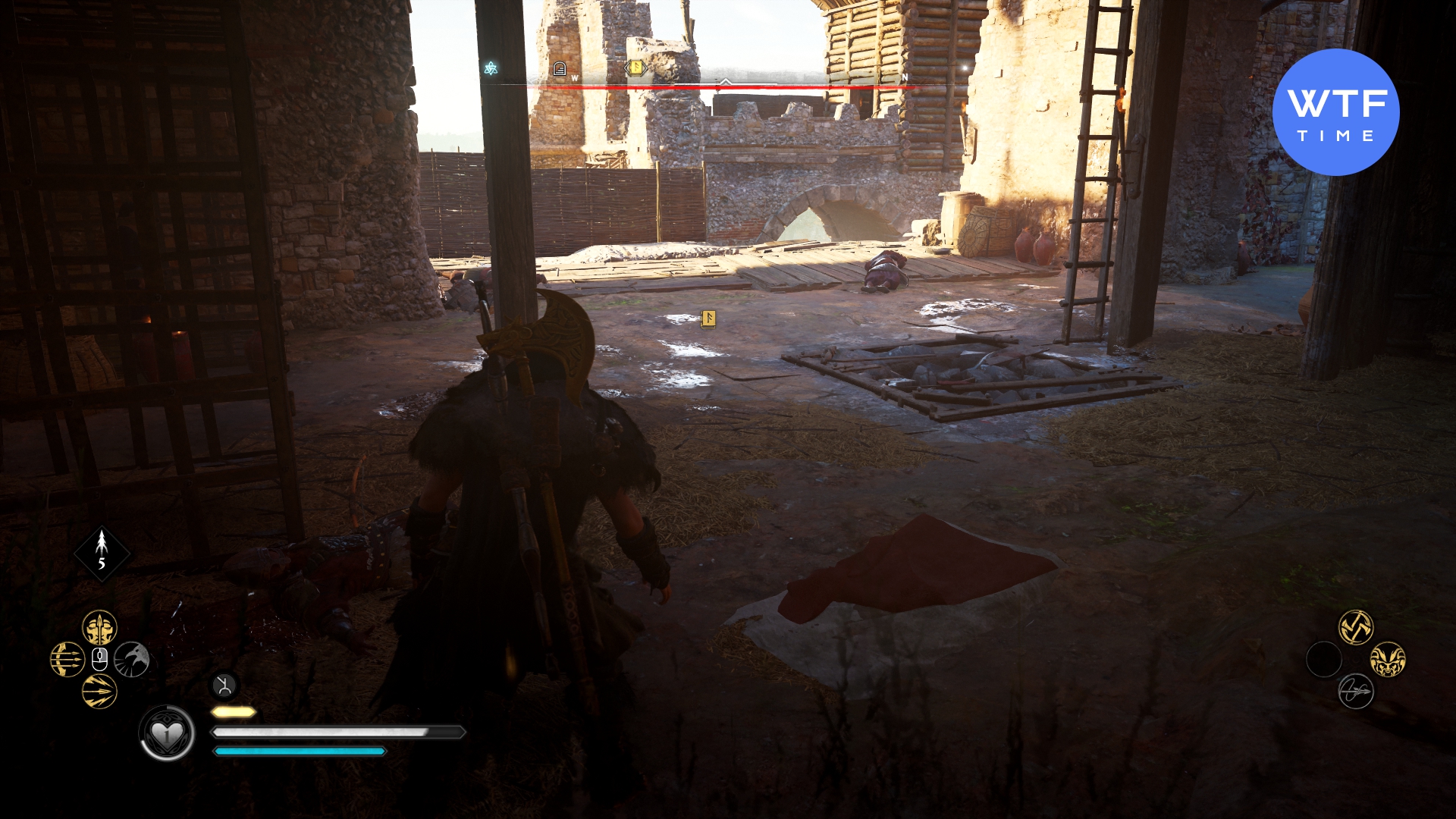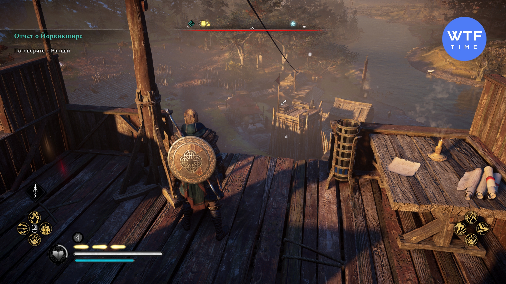 Вы найдете эту способность в Архивах на западе Йорвика. Вам нужно подняться по строительным лесам с внешней стороны здания и выстрелить в крепление мешка с горшками. Он упадет и проломит дыру в полу второго этажа. Теперь вернитесь в здание и выстрелите в замок на лестнице, чтобы подняться к этой Книге Знаний.