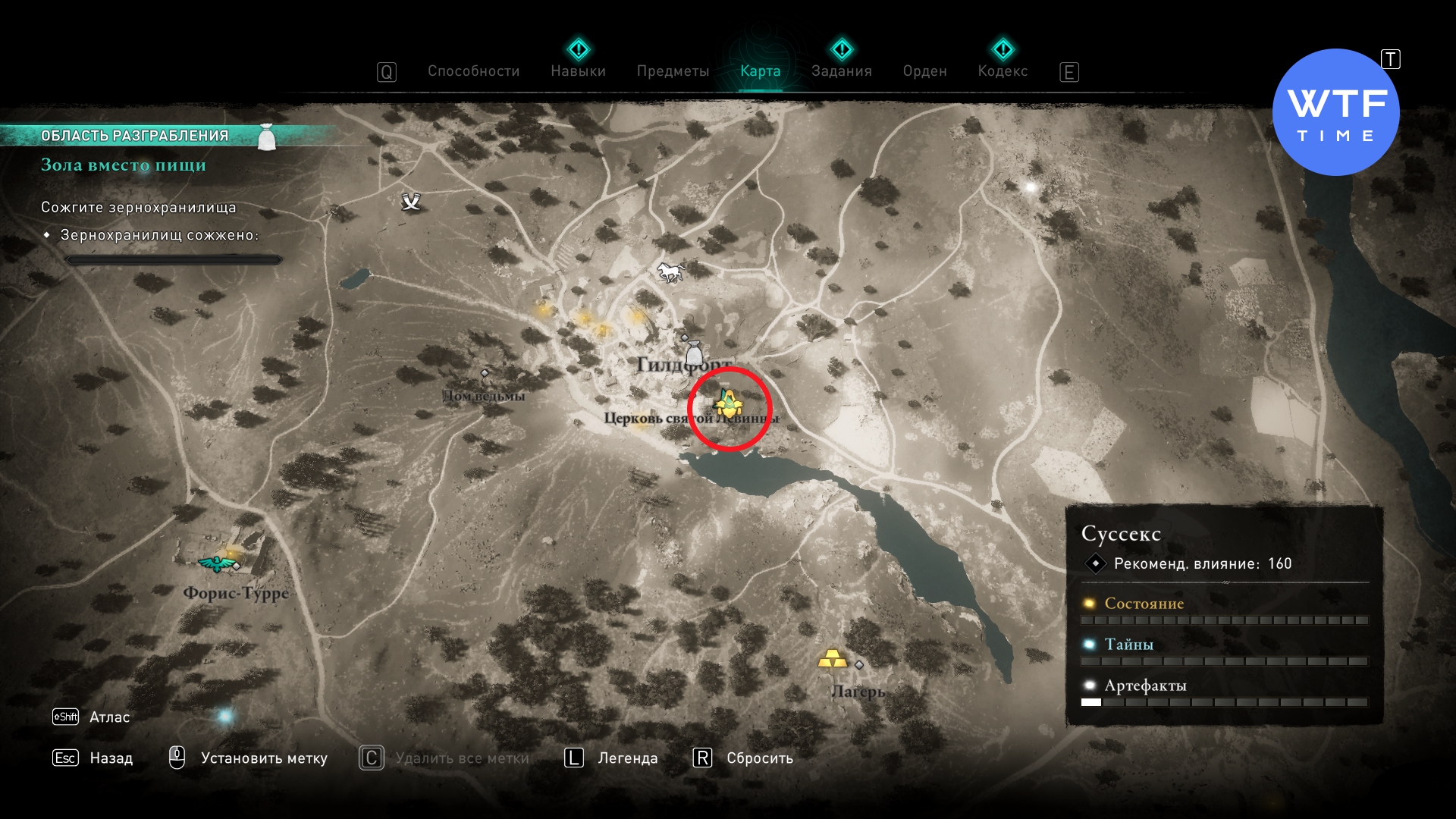 Доберитесь до церкви святой Левинны в Гилфорде (центральная часть Суссекса). Используйте подъемник с внешней стороны церкви, а затем сбейте подвешенный груз (см. скриншот 3).