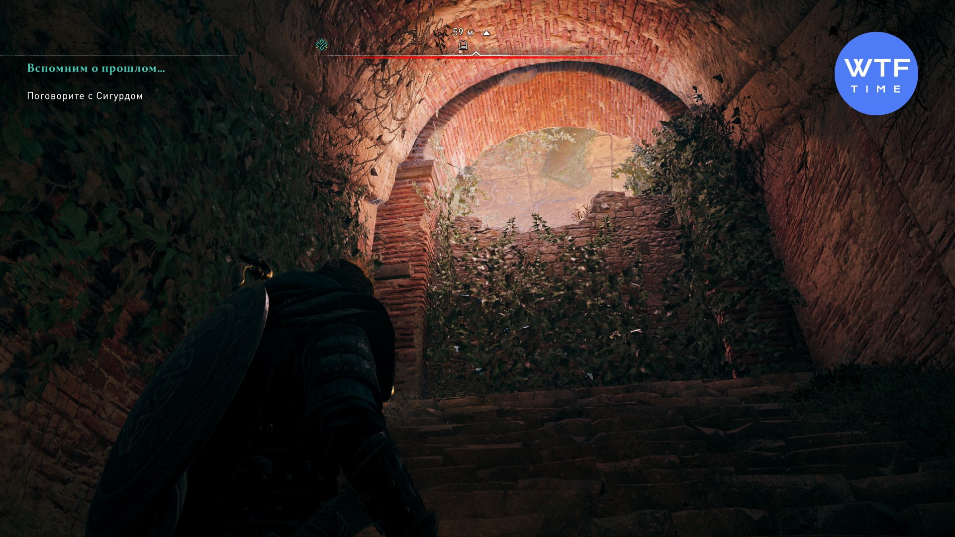 Пролезьте через заколоченный лаз в стене (см. скриншот 3), а затем взорвите стену слева от вас. Продолжайте идти по коридору, пока не упретесь в кирпичную стену, заросшую лианами (см. скриншот 4). Сверху есть разрушаемая часть. Сломайте ее и сможете забрать наручи.
