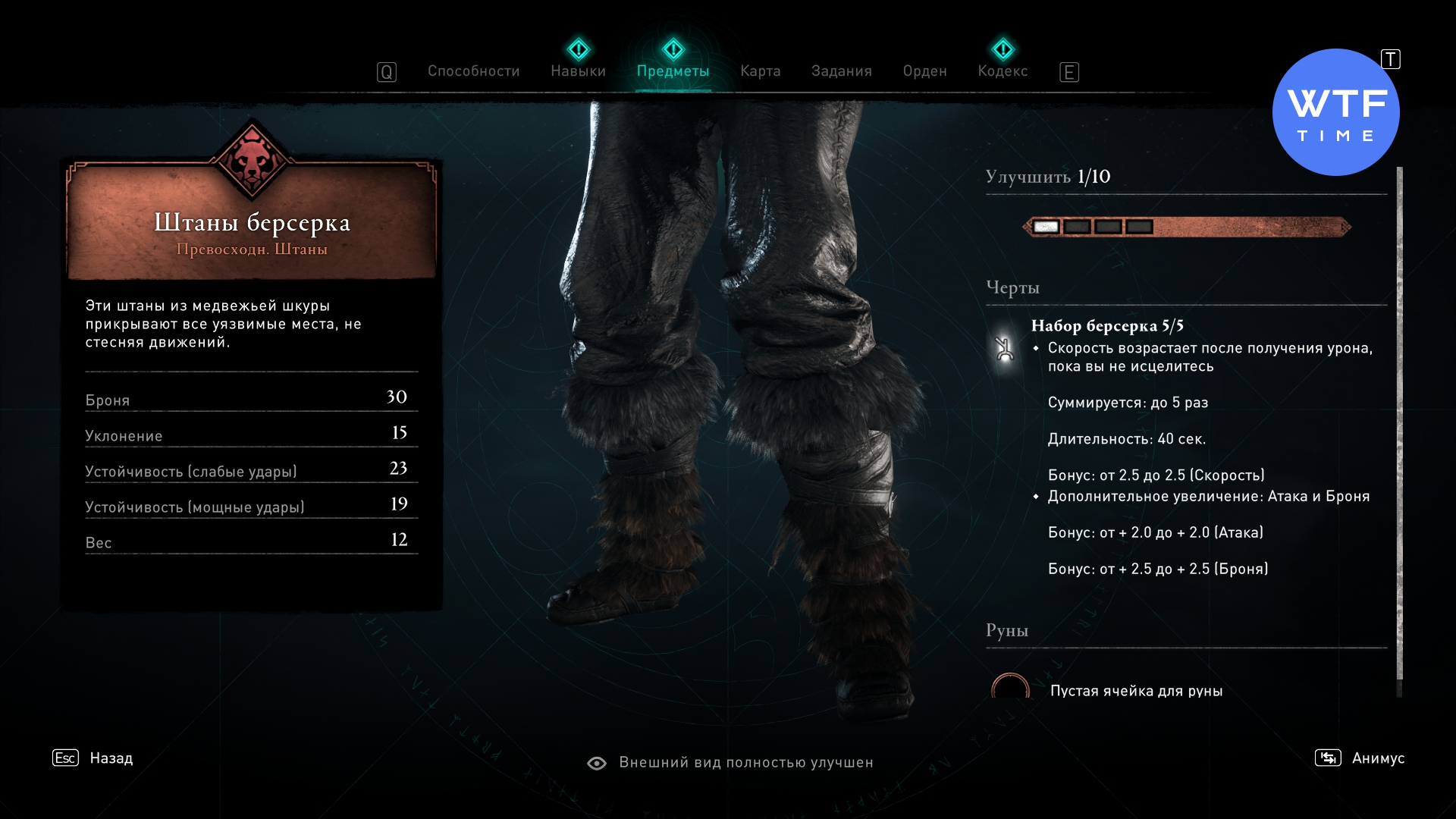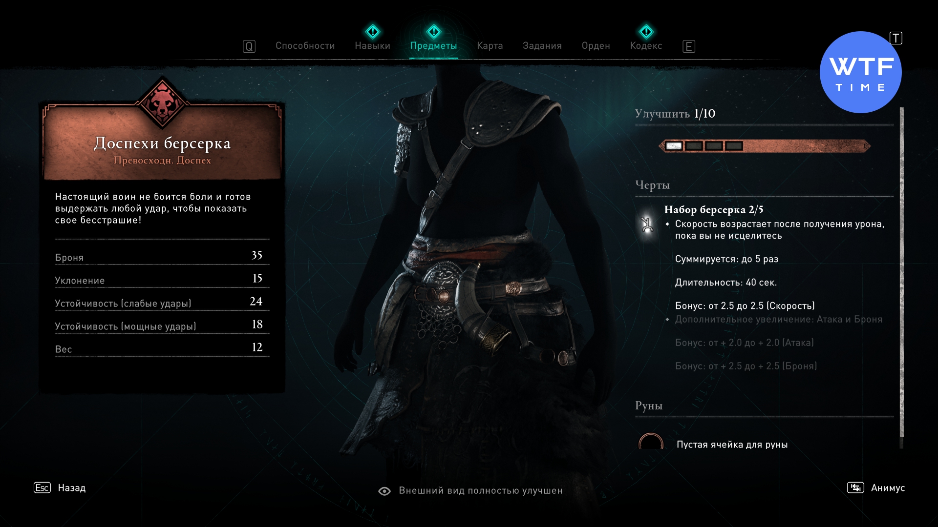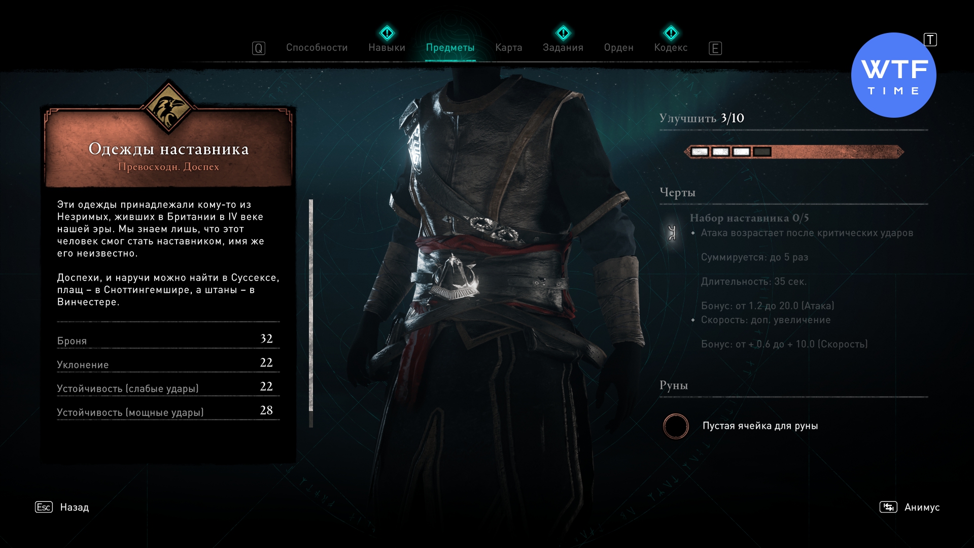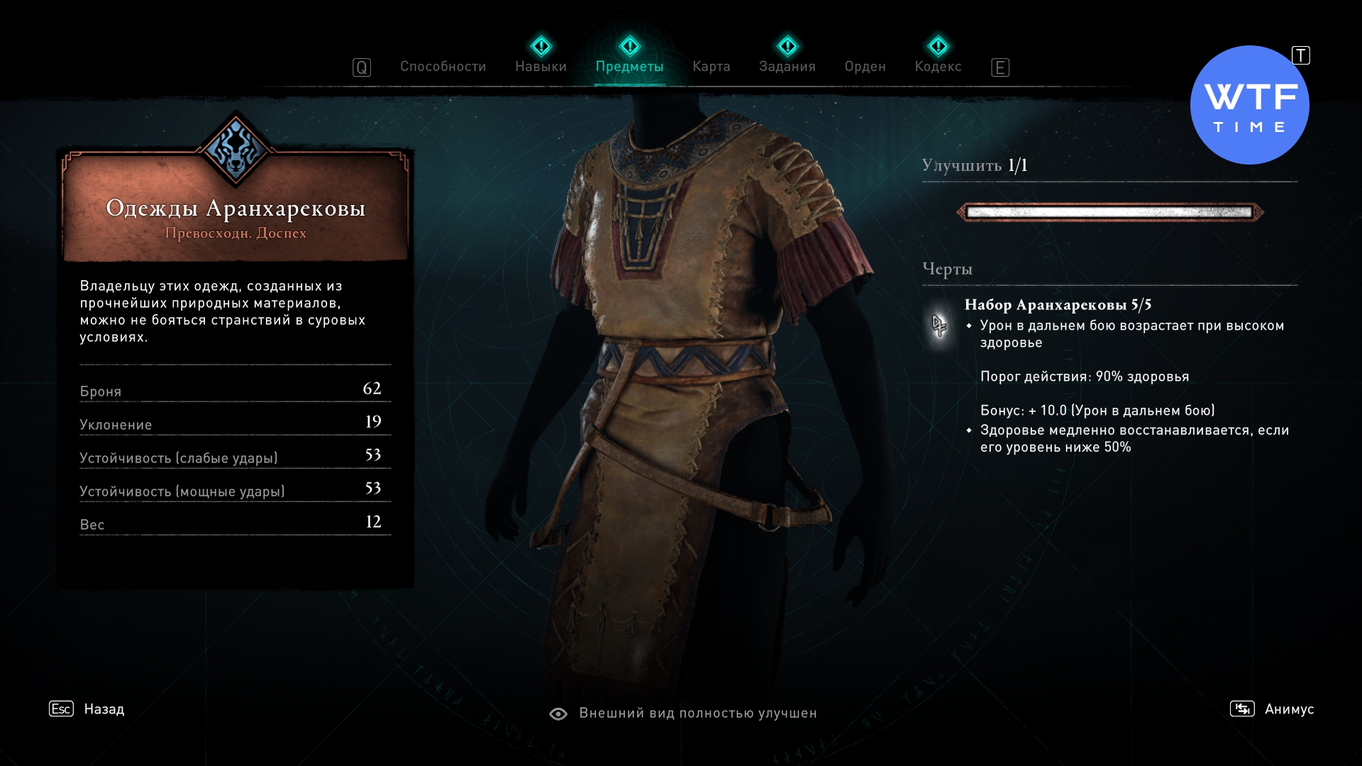Вы получите этот сет по сюжету в самом начале игры. Бонусы комплекта: