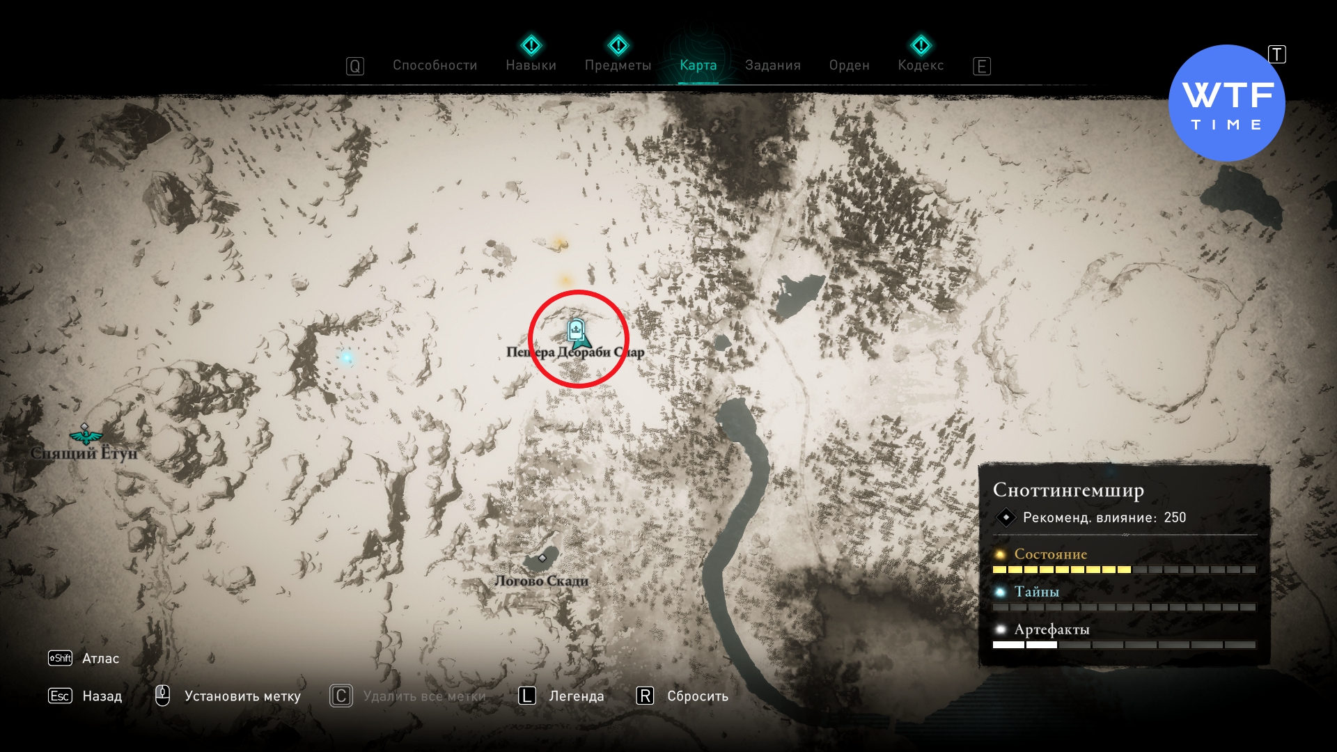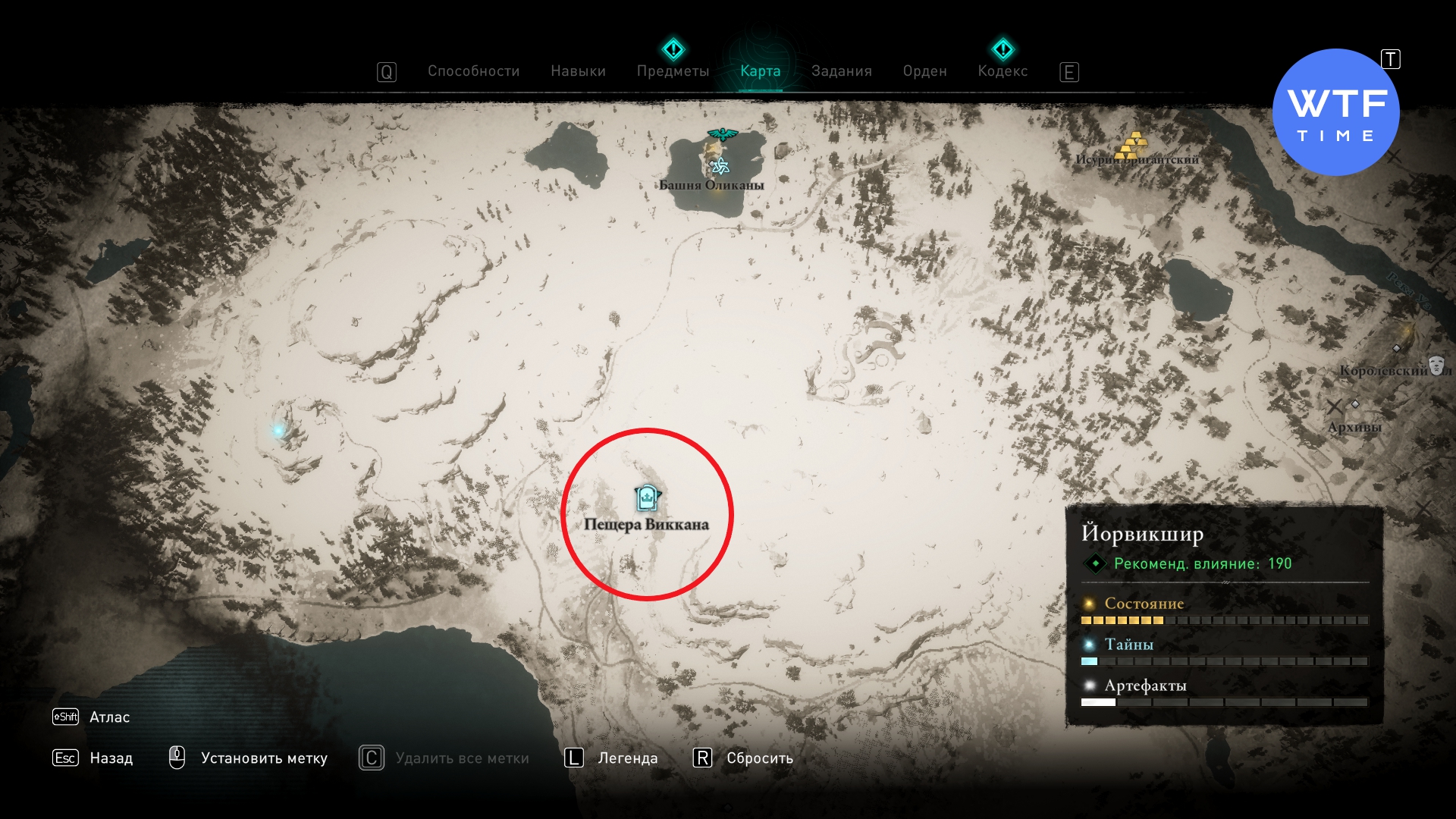 Отыщите пещеру Виккана к юго-западу от Йорвика. Карабкайтесь по ледяным скалам, пока не пройдете большую область с деревом и не окажетесь в логове ведьмы. Прямо возле записки с проклятьем есть ледяная стена, которую можно разрушить (см. скриншот 3). Она приведет вас к скрытой области с надписью на камне: