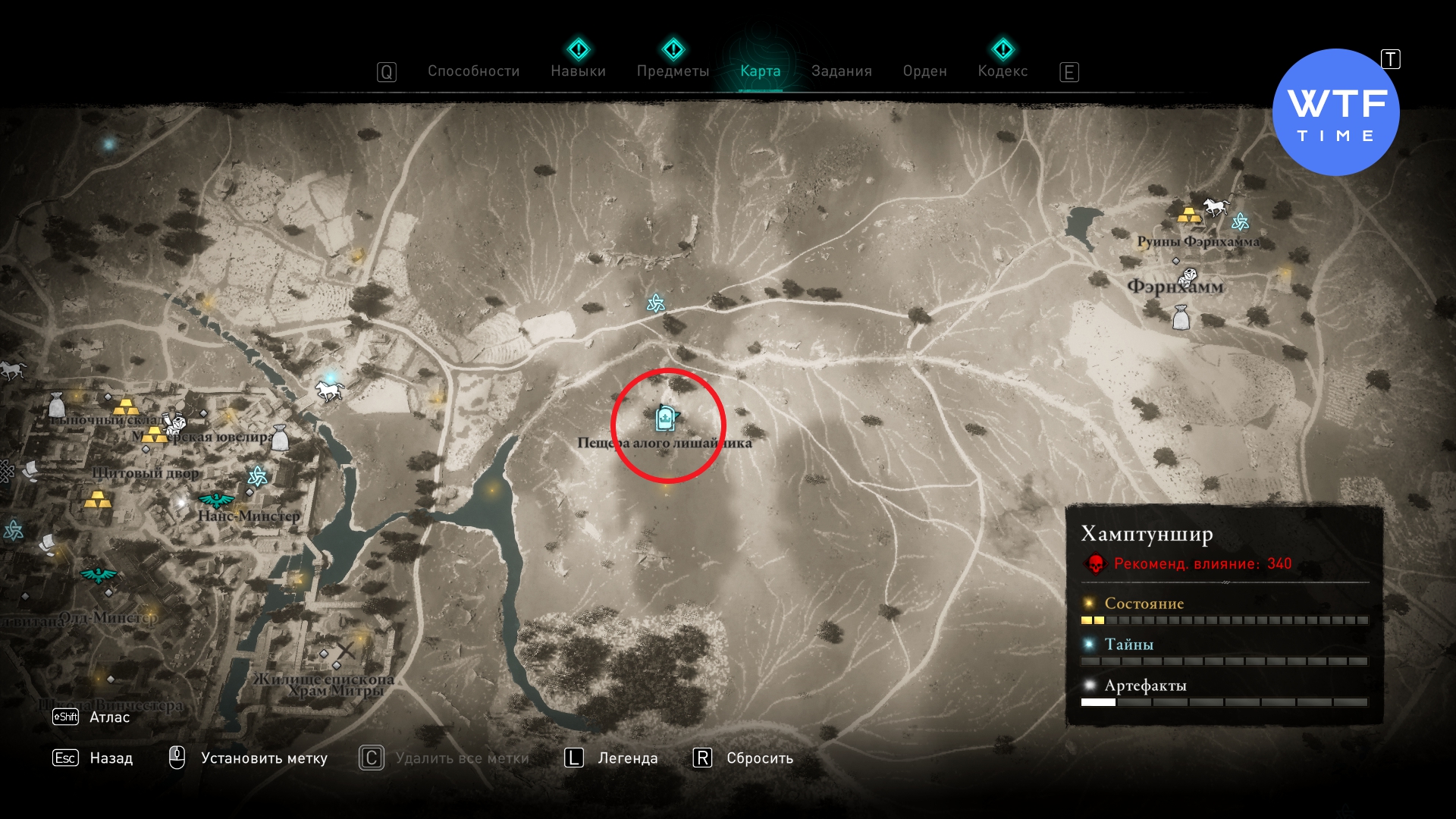Отыщите Пещеру алого лишайника к востоку от Винчестера. Внутри пещеры много ядовитого газа - просто кидайте в него факел. Двигайтесь вперед по единственно возможному пути, пока не доберетесь до надписи на стене: