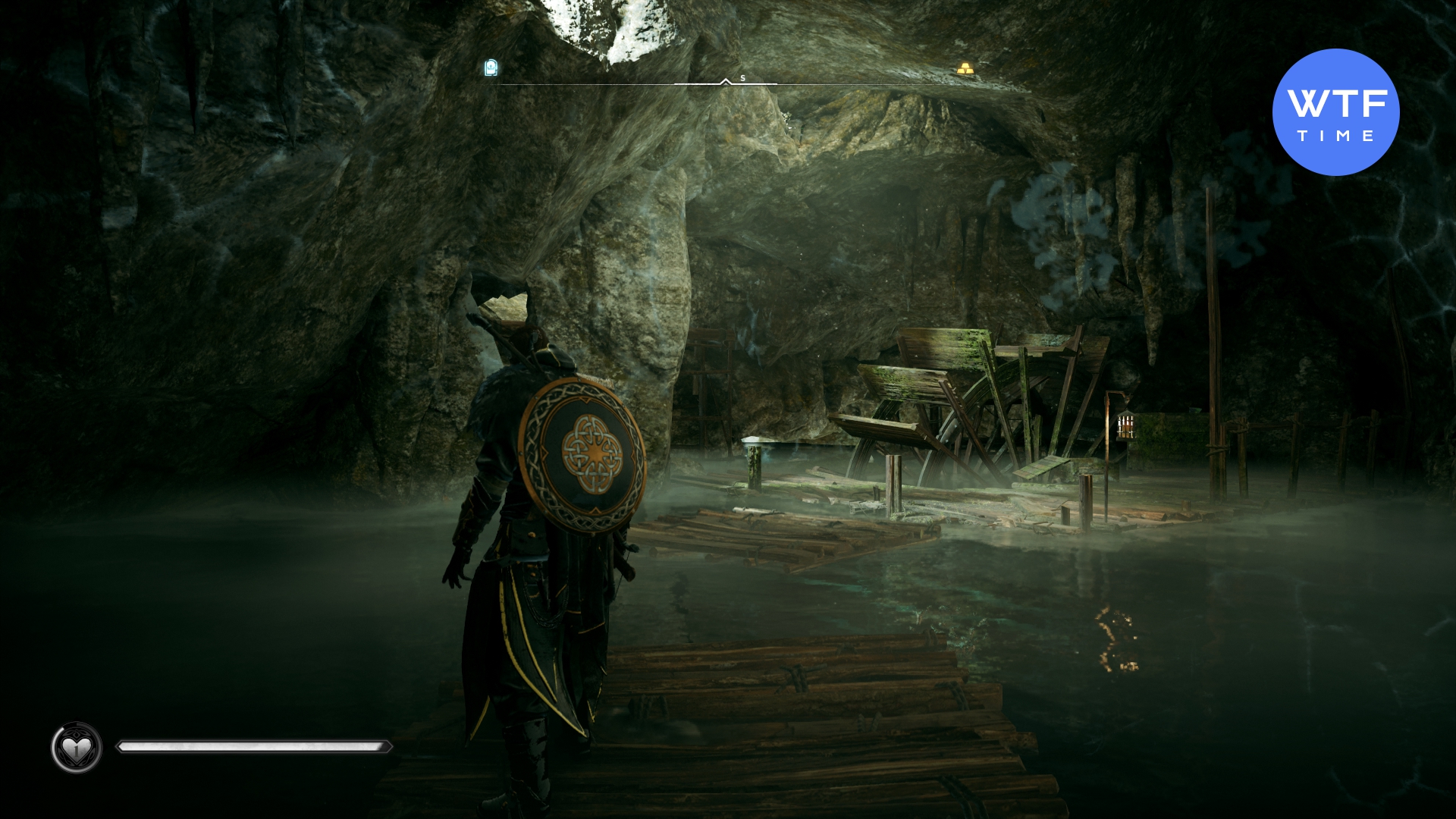 Доберитесь до Воцига к северо-западу от Винчестера. В пещере проплывите на лодке до упора, затем карабкайтесь наверх по стенам до надписи на стене: