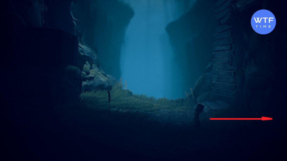Выбравшись наружу, вы окажетесь у сломанного моста. Потяните за рычаг, чтобы Шестая смогла перепрыгнуть на другую сторону. Он убежит слишком далеко и игра предложит вам ее позвать. После этого вы сможете перепрыгнуть через пропасть, схватившись за руку Шестой.