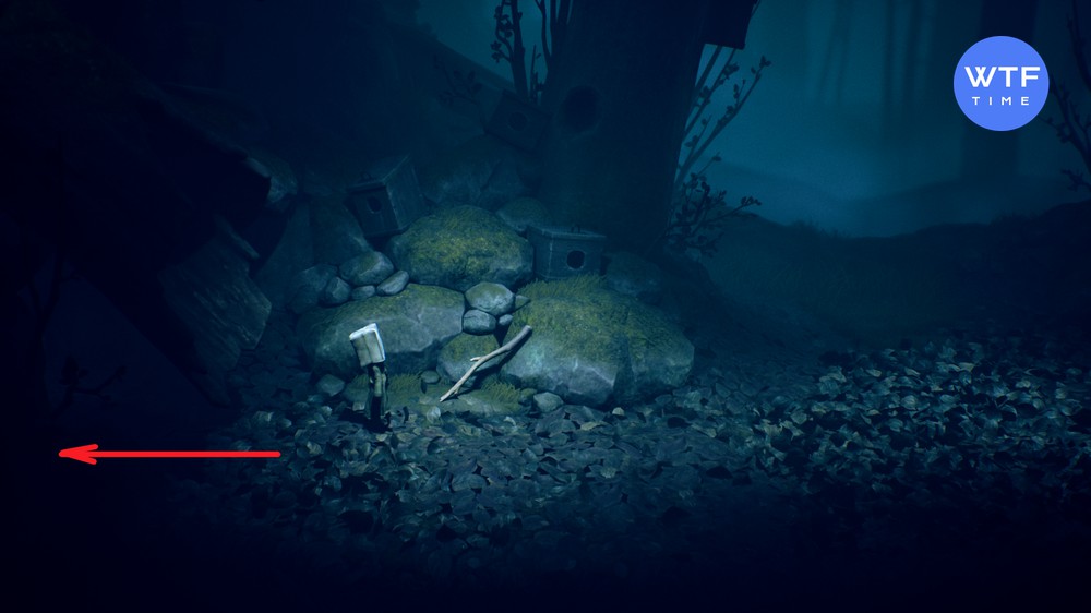 Выбравшись из бревна, вы увидите перед собой еще одну палку. Развернитесь и пролезьте под бревном, чтобы найти еще одну скрытую область с хаотичными останками.