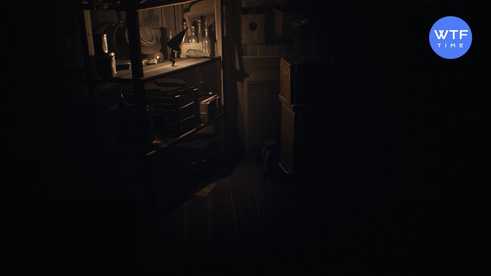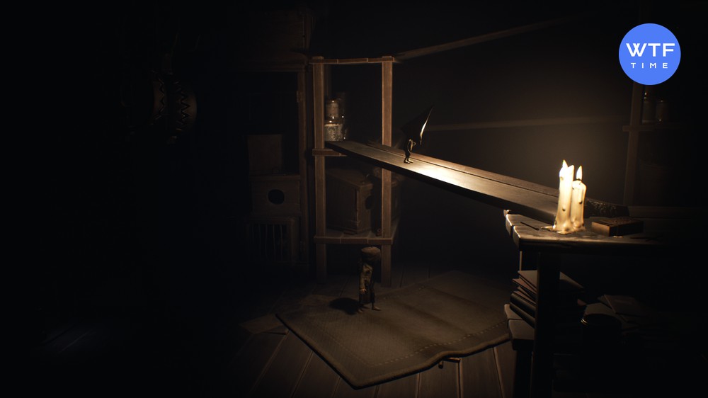 Вы окажетесь в темной комнате со свечами, где ном будет освещать вам путь. Нужно двигаться направо вдоль стеллажей, чтобы ном шел за вами и светил.