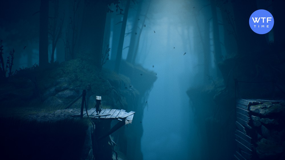 После ящика пройдите немного вперед и упретесь в разрушенный мост. Вам нужно аккуратно спрыгнуть вниз примерно в том месте, где Моно стоит на скриншоте ниже.