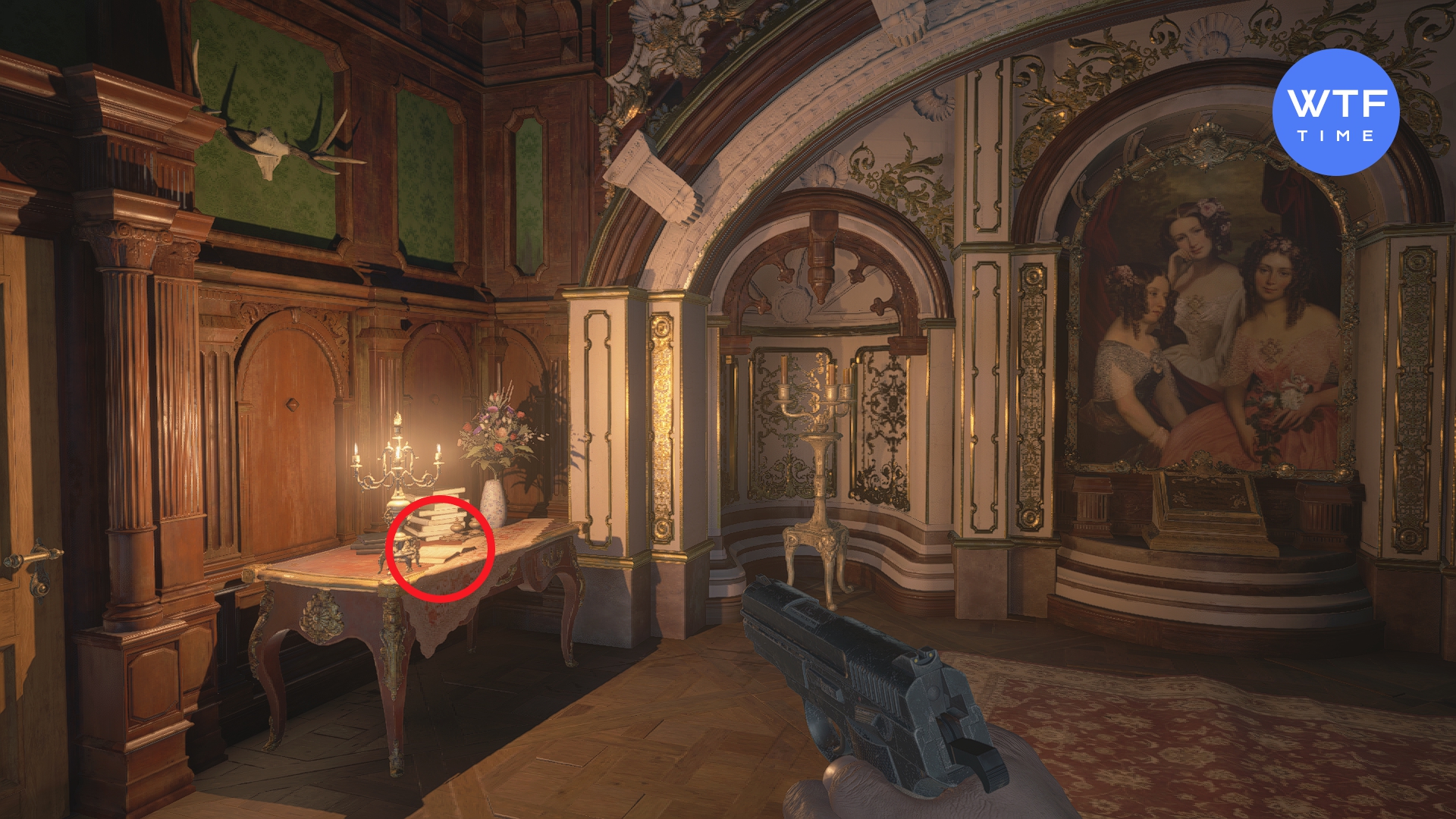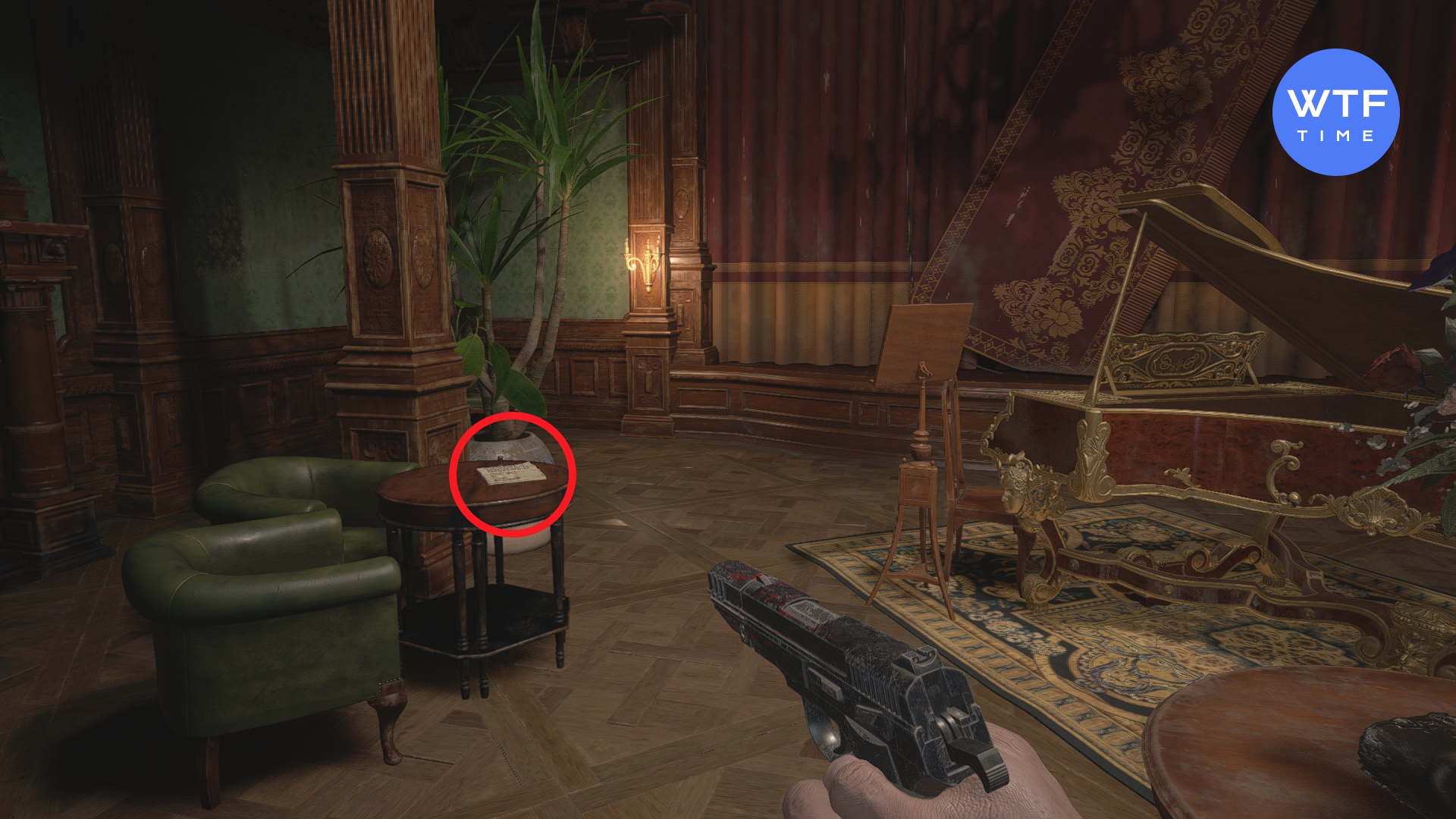 - Записка главной камеристки - в небольшой комнате с лестницей перед Оперным залом, на втором этаже. Записка лежит на комоде с часами.