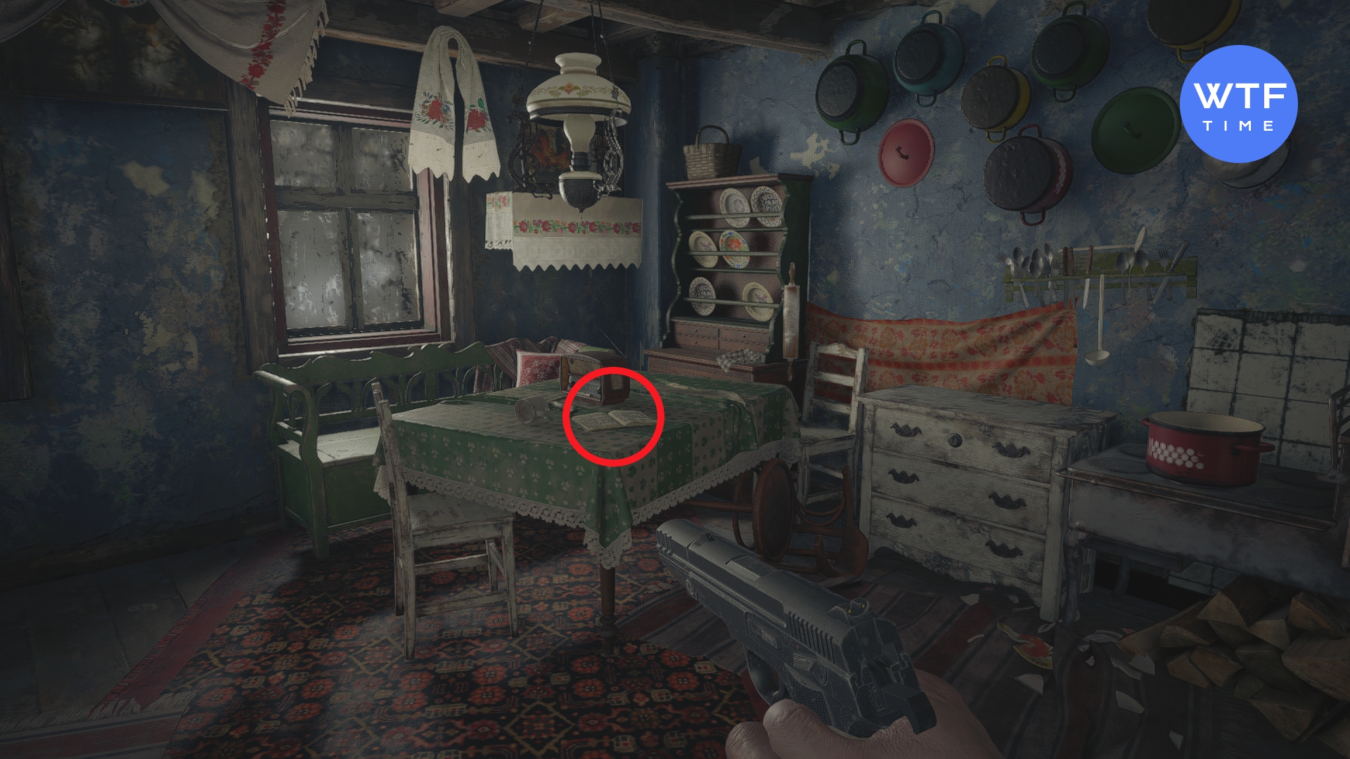 - Дневник горничной - на первом подвальном уровне, куда вы упадете, убегая от одной из дочерей Димитреску. Дневник лежит на полке справа.