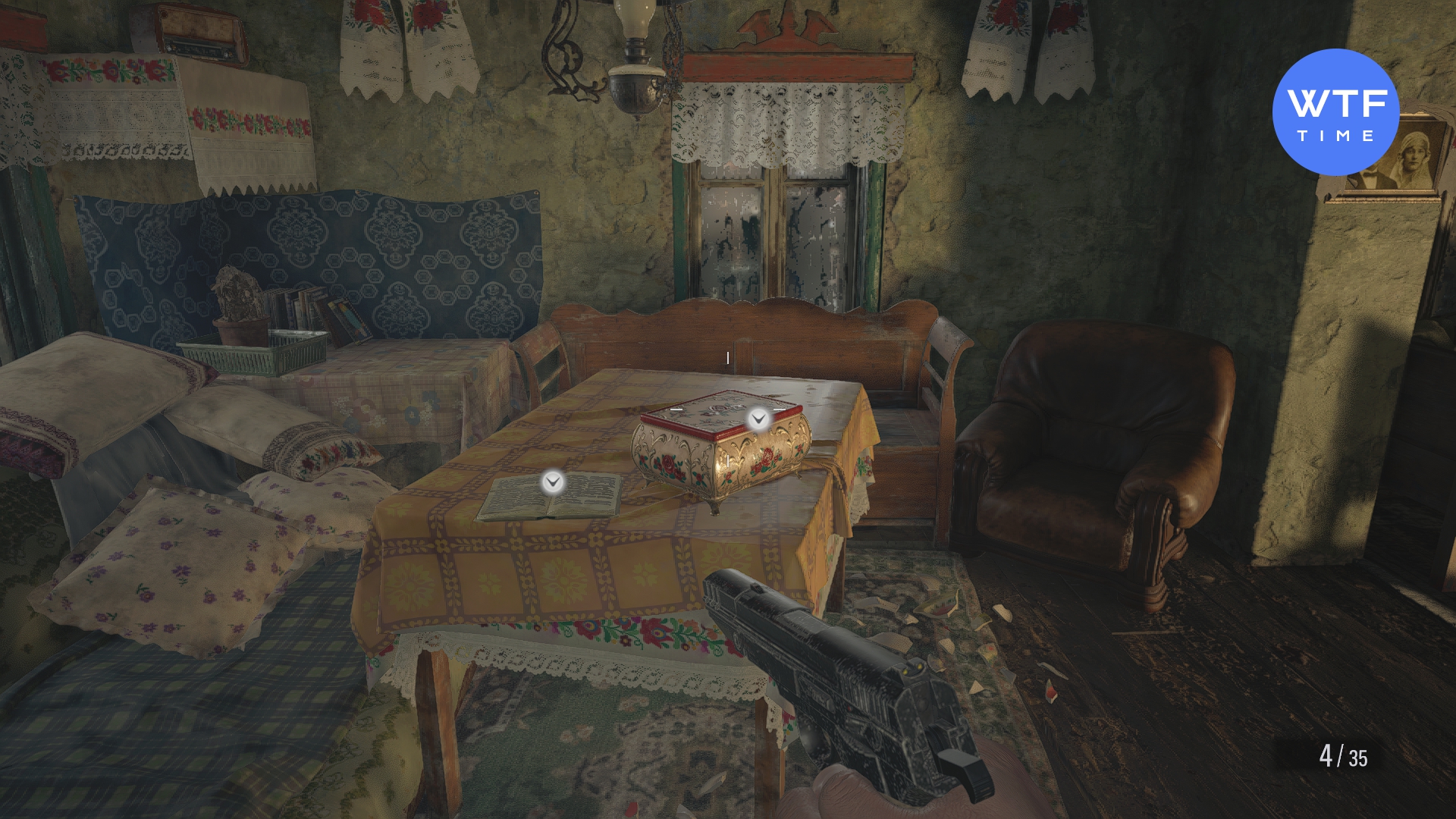 - Опасные существа - сразу после входа в дом Луизы, на кресле в углу. Это в той же комнате, что и точка сохранения.