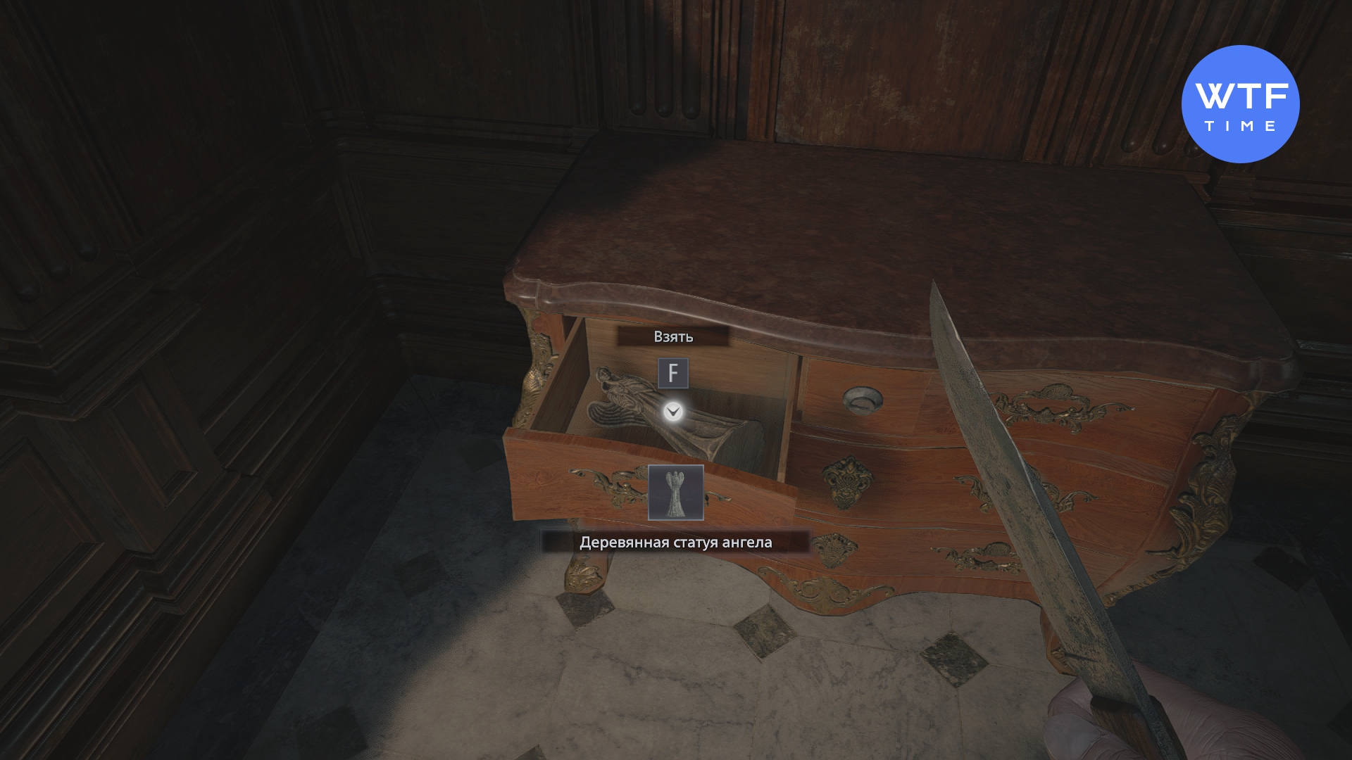 - Деревянная статуя ангела - в коридоре между Столовой и Кухней есть комод с запертым на замок ящиком. Используйте отмычку, чтобы открыть его и забрать это сокровище.