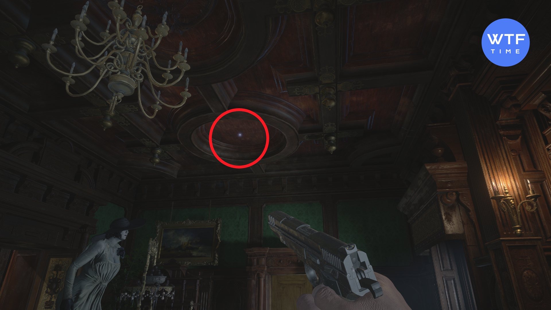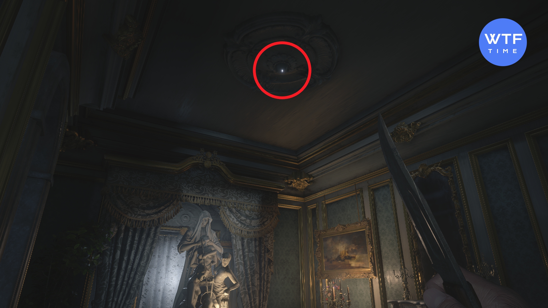 - Обломок кристалла - с ключом Димитреску вы также можете попасть в Зал наслаждений на втором этаже замка. Кристалл сверкает под потолком.