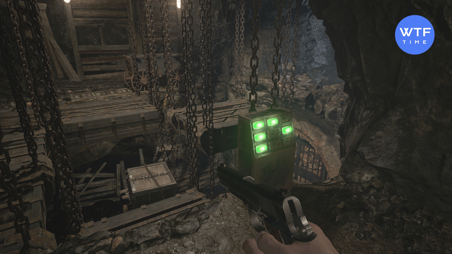 - Большой кровавый рубин - от предыдущего сокровища вернитесь к причалу и теперь идите налево. Опустив разводной мост, вы окажетесь у выхода Замка Димитреску, где уже были ранее. Идите к колодцу на заднем дворе и используйте колесо, чтобы вытащить лестницу и спуститься вниз. Чтобы открыть дверь к сокровищу, нужно решить простую головоломку.