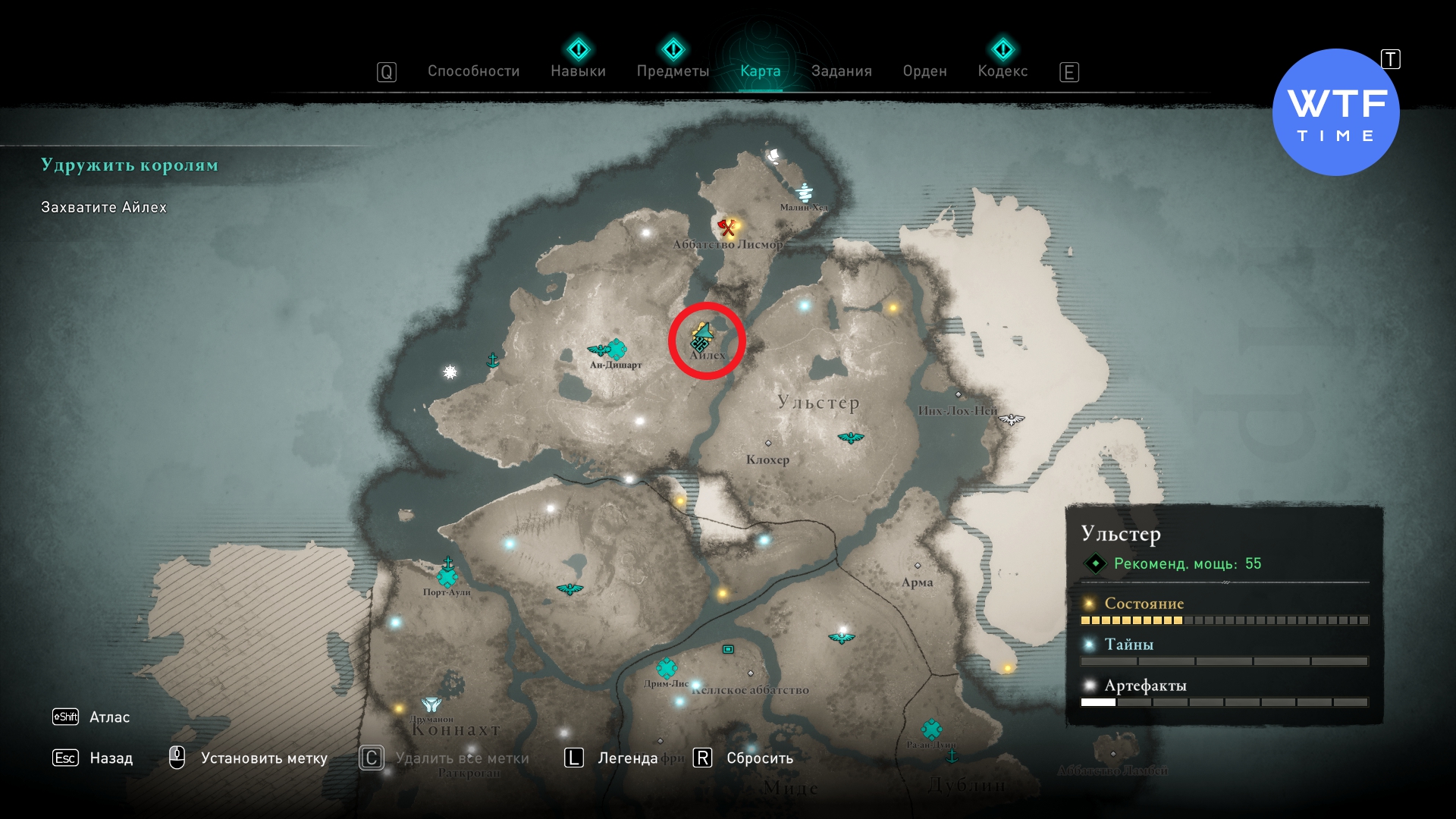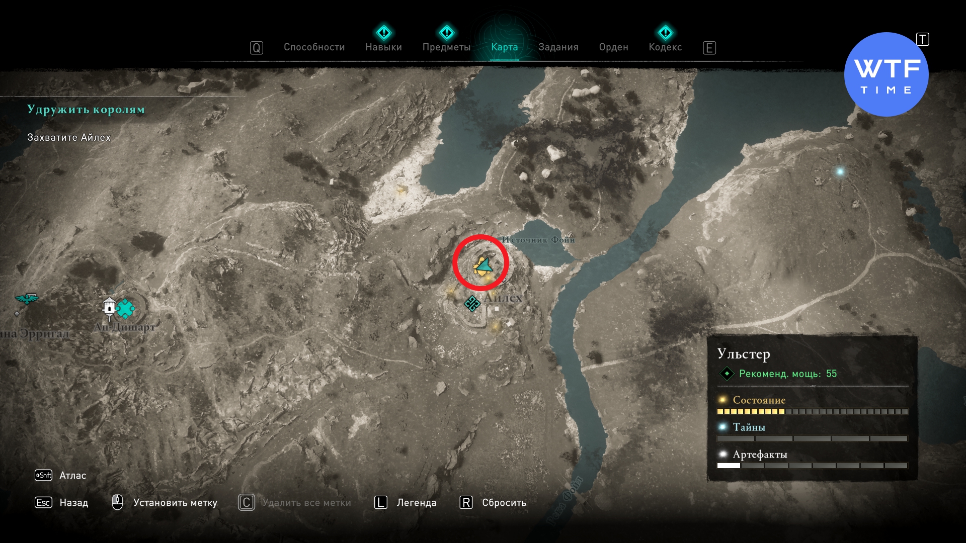 В Айлех в центральной части Ульстера вы отправитесь во время сюжетного задания "Удружить королям". Сундук находится в подземной части с тюремными камерами. Чтобы открыть дверь, вам нужно подняться наверх и отыскать палатку прямо над сундуком, ориентируясь по метке снаряжения.