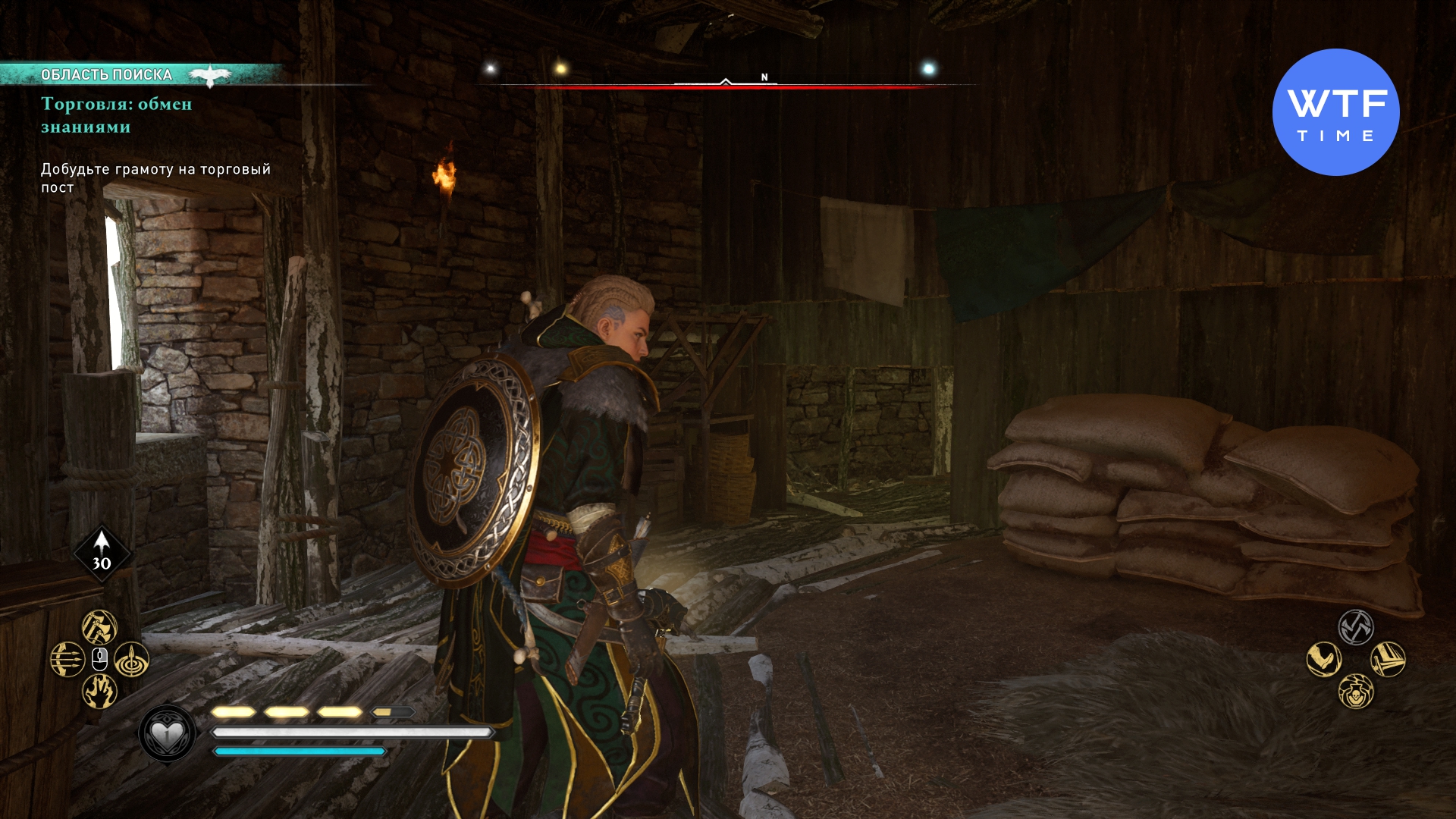 Крепость Кашелор в северной части Коннахта вы будете штурмовать по сюжету. Отправляйтесь к метке снаряжения с карты ниже. В 20 метрах к юго-западу от нее есть два передвижных стеллажа. Узкий нужно протолкнуть вперед, а широкий - влево (см. скриншот 3). Так вы доберетесь до сундука.