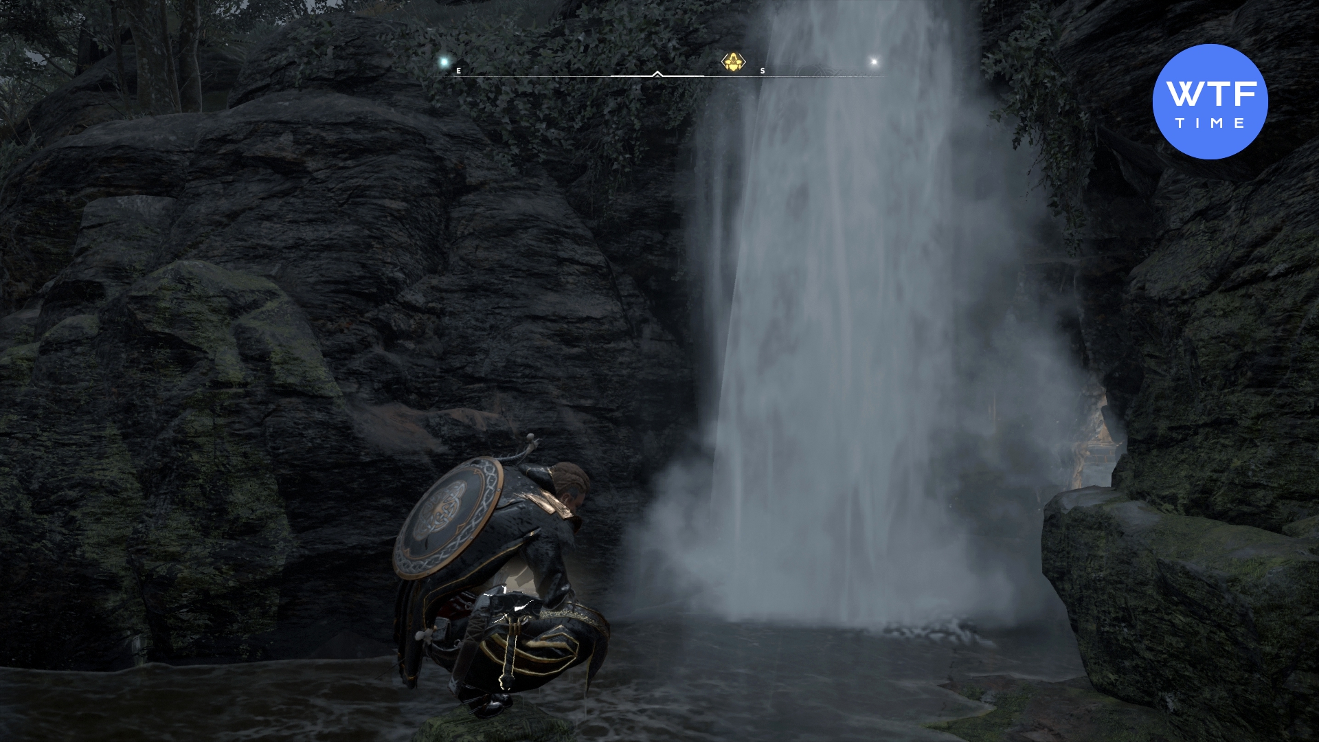 Этот щит лежит в запертом сундуке на юге региона Миде. Пройдите через водопад, чтобы до него добраться (см. скриншот 2-3). Чтобы его открыть, нужно собрать 5 артефактов Уи Нейллов. Подробнее в этом гайде.